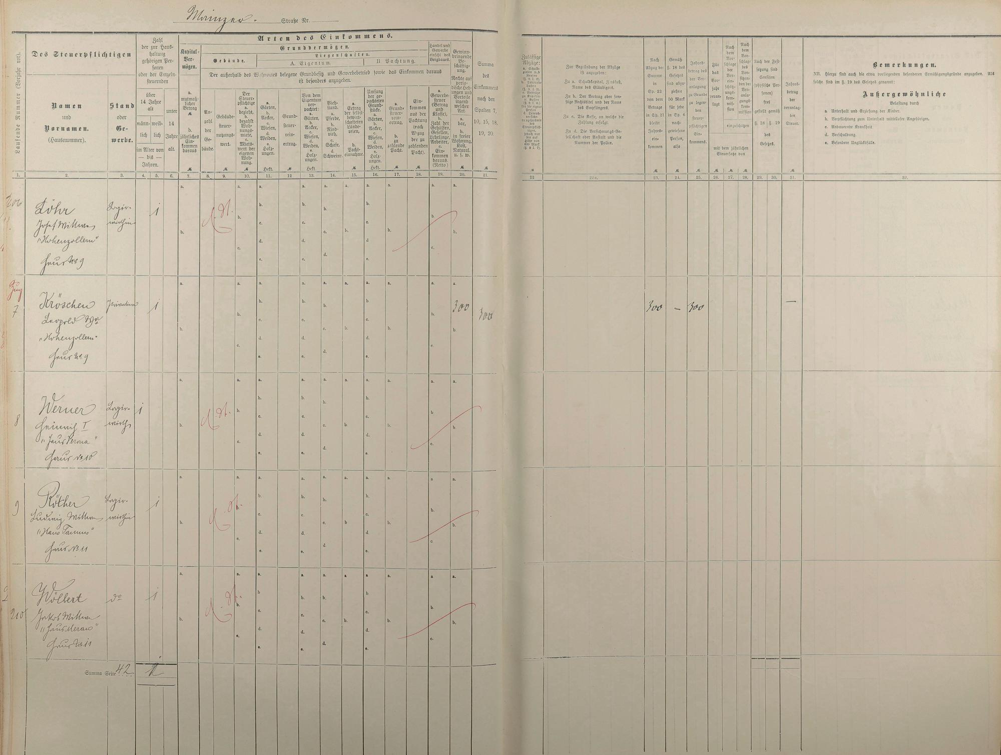 Personenverzeichnis und Einkommenssteuerliste 1893 nach Straßen