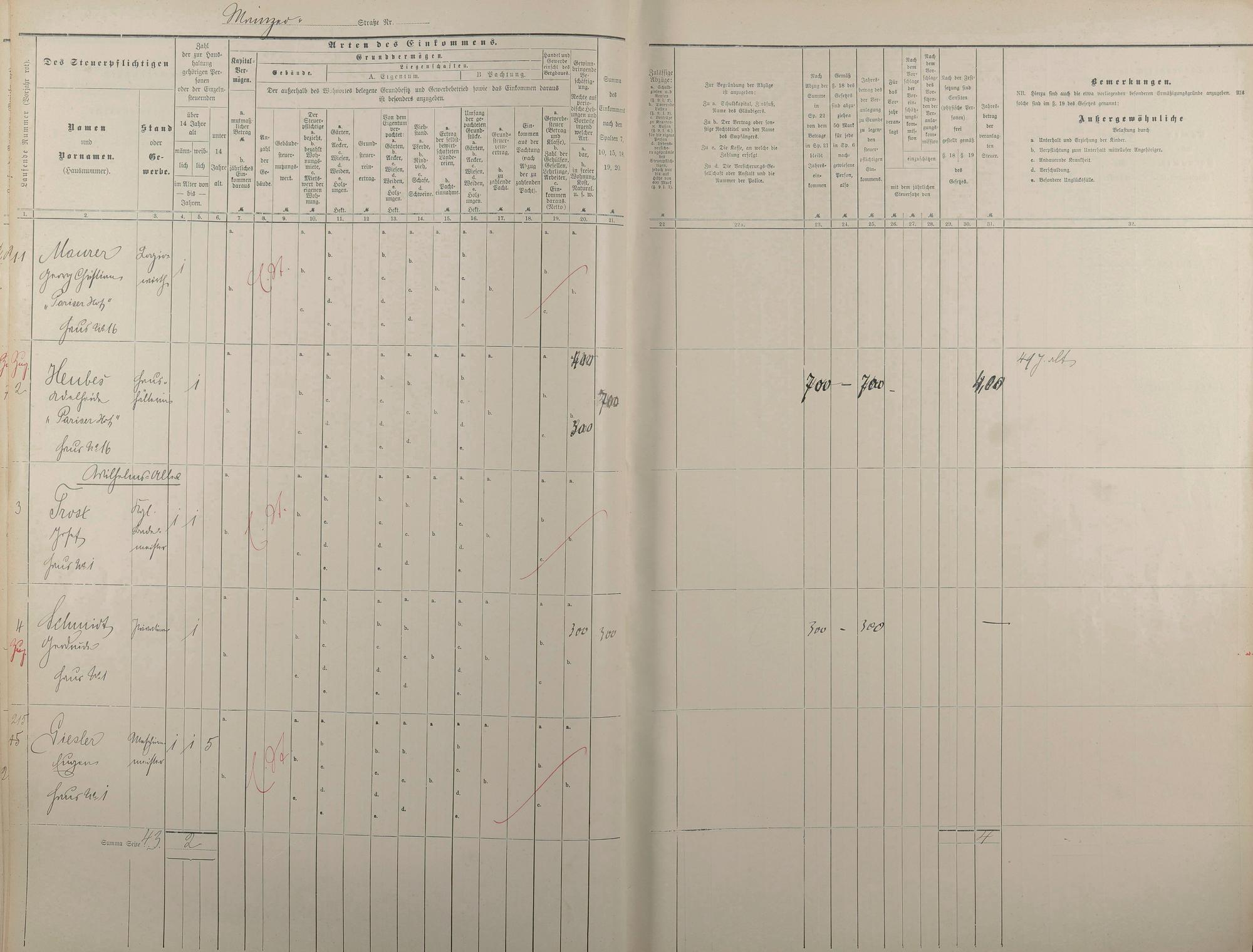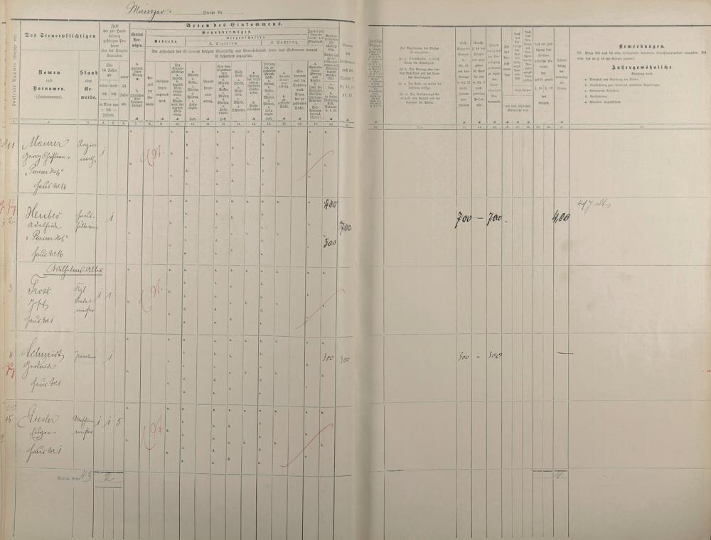 Personenverzeichnis und Einkommenssteuerliste 1893 nach Straßen