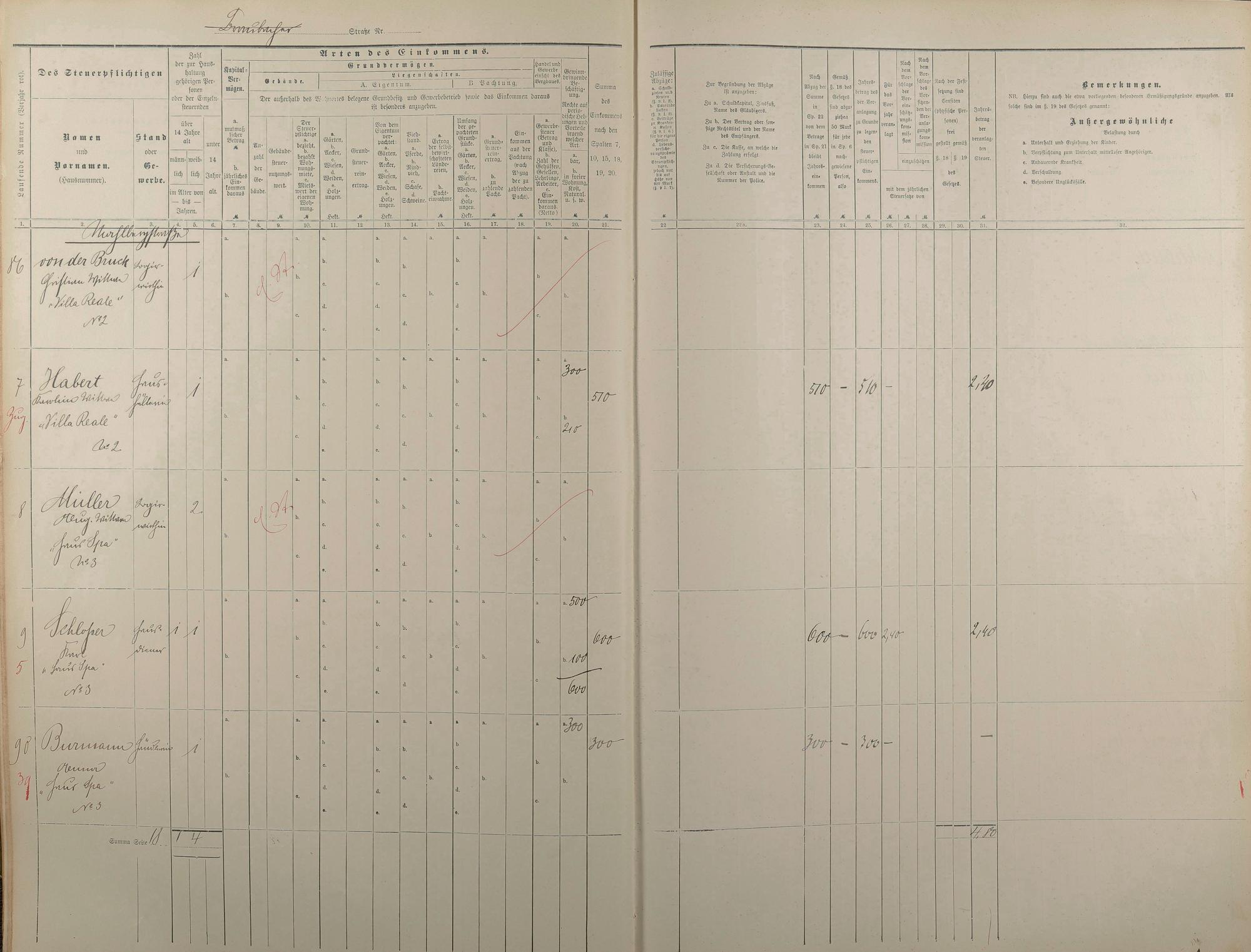 Personenverzeichnis und Einkommenssteuerliste 1893 nach Straßen