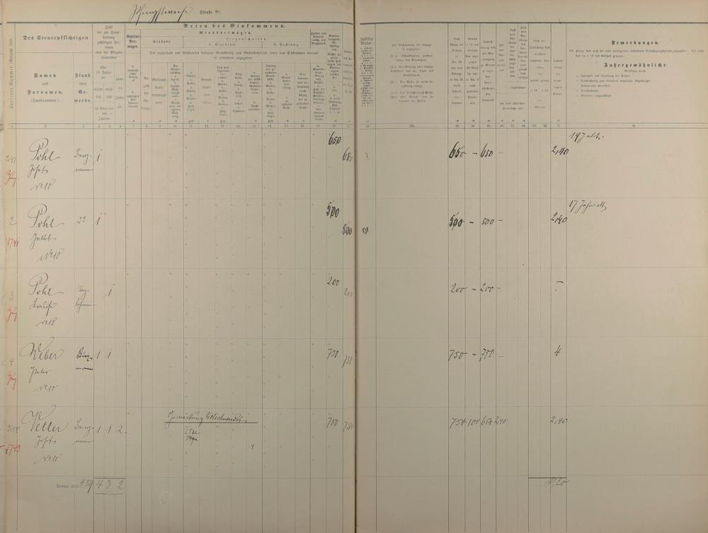 Personenverzeichnis und Einkommenssteuerliste 1893 nach Straßen