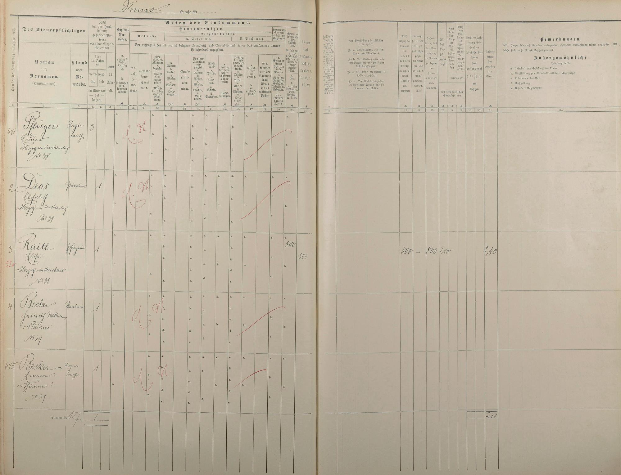Personenverzeichnis und Einkommenssteuerliste 1893 nach Straßen
