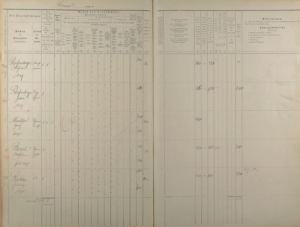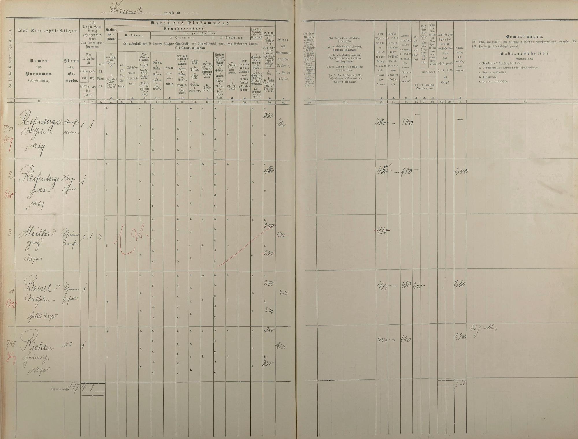 Personenverzeichnis und Einkommenssteuerliste 1893 nach Straßen