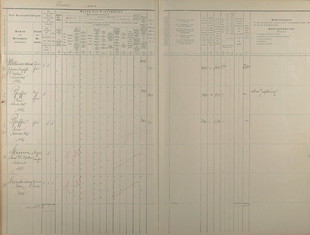 Personenverzeichnis und Einkommenssteuerliste 1893 nach Straßen