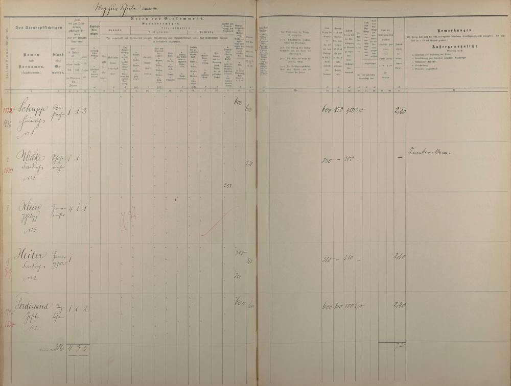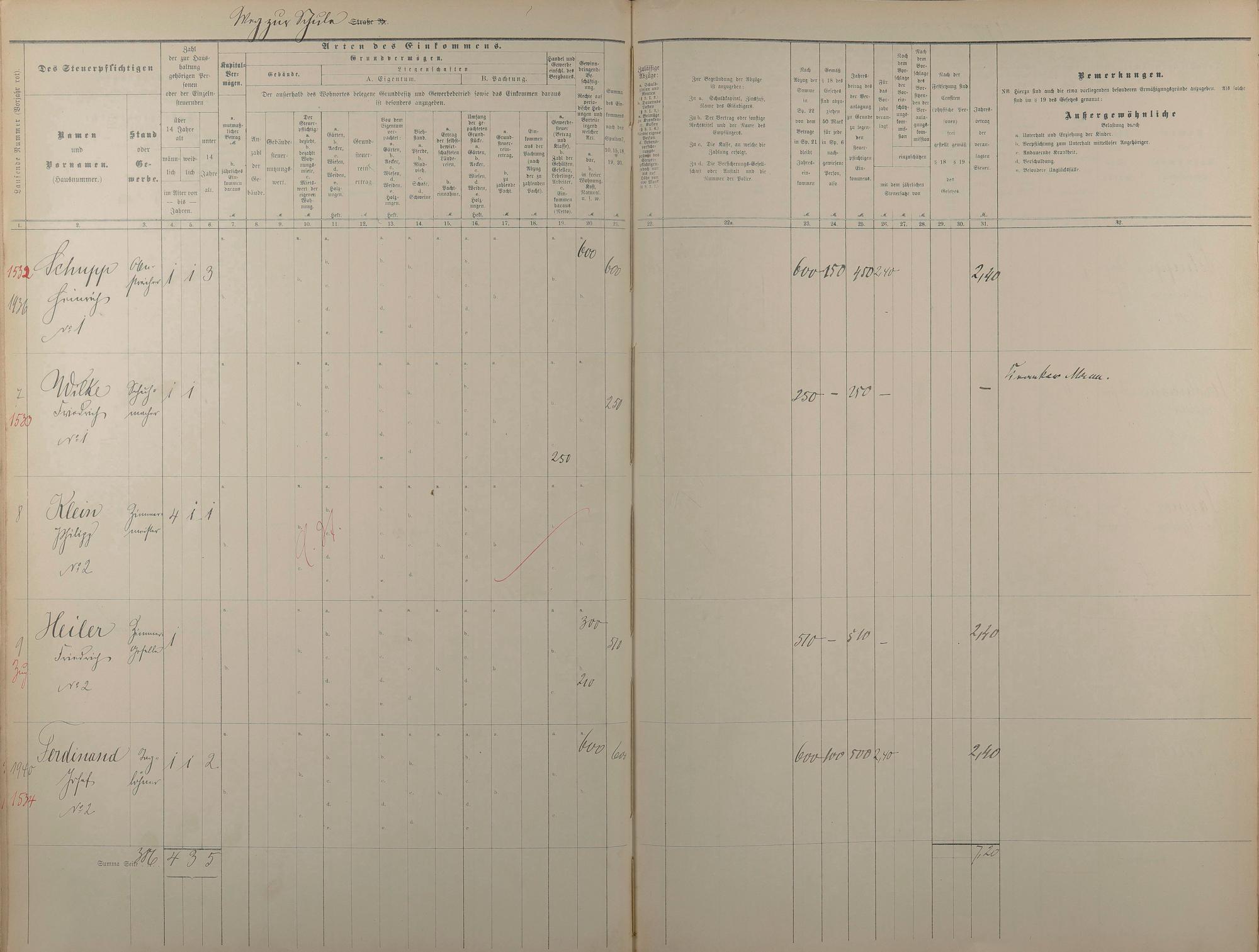 Personenverzeichnis und Einkommenssteuerliste 1893 nach Straßen