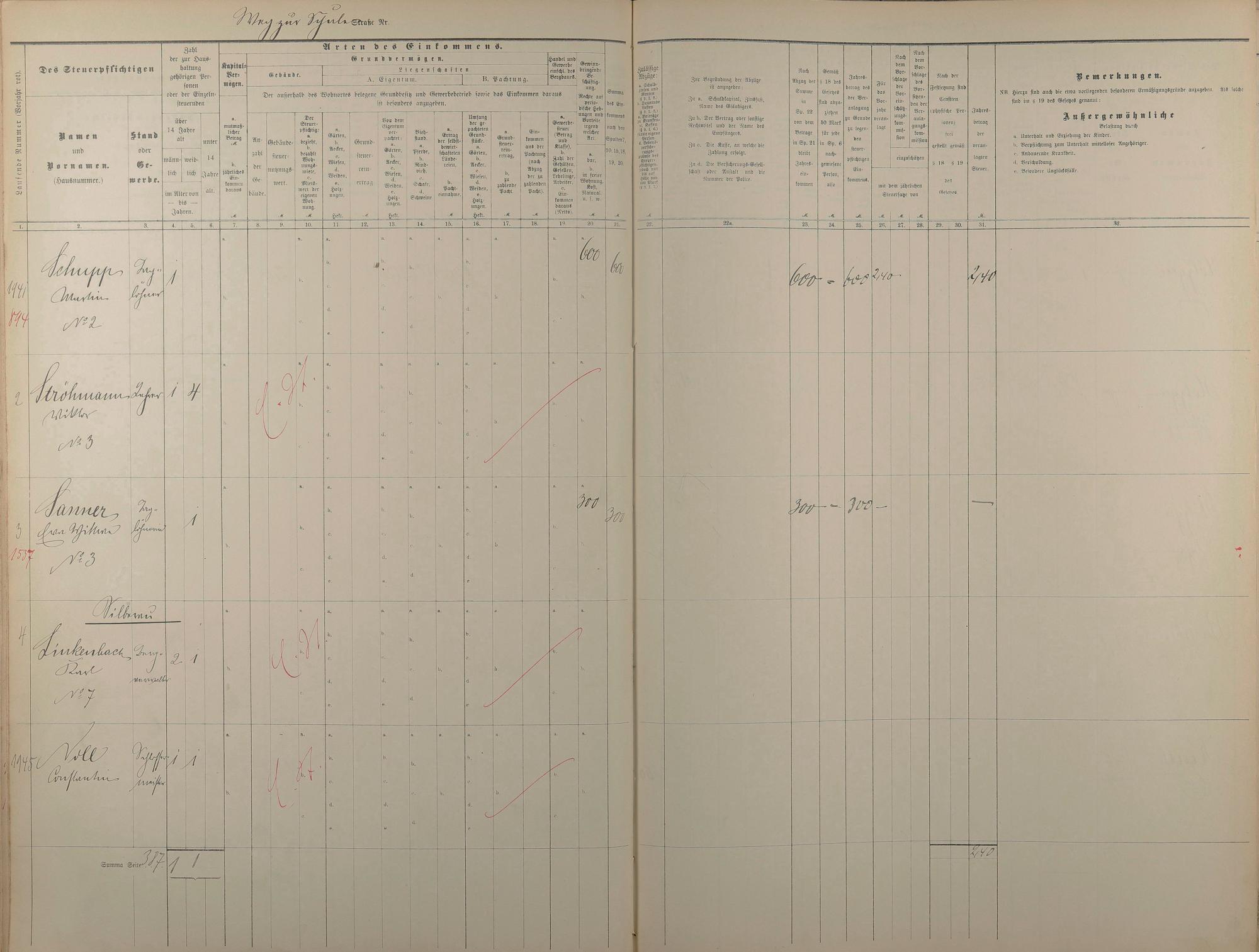 Personenverzeichnis und Einkommenssteuerliste 1893 nach Straßen