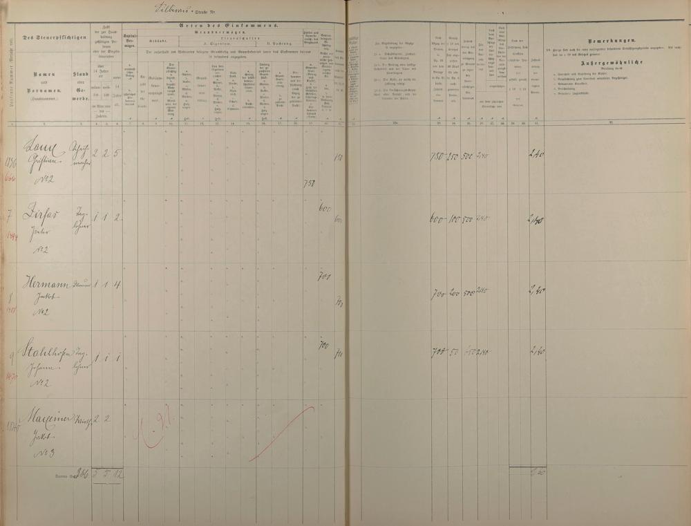 Personenverzeichnis und Einkommenssteuerliste 1893 nach Straßen