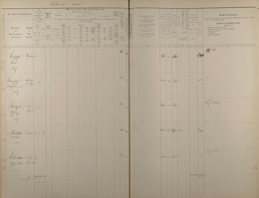 Personenverzeichnis und Einkommenssteuerliste 1893 nach Straßen