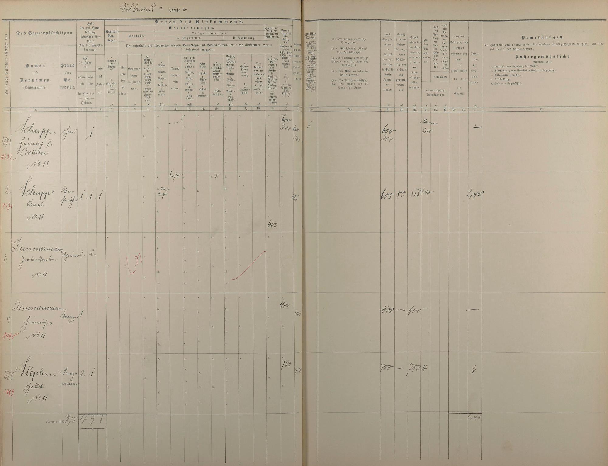 231: Personenverzeichnis und Einkommenssteuerliste 1893 nach Straßen