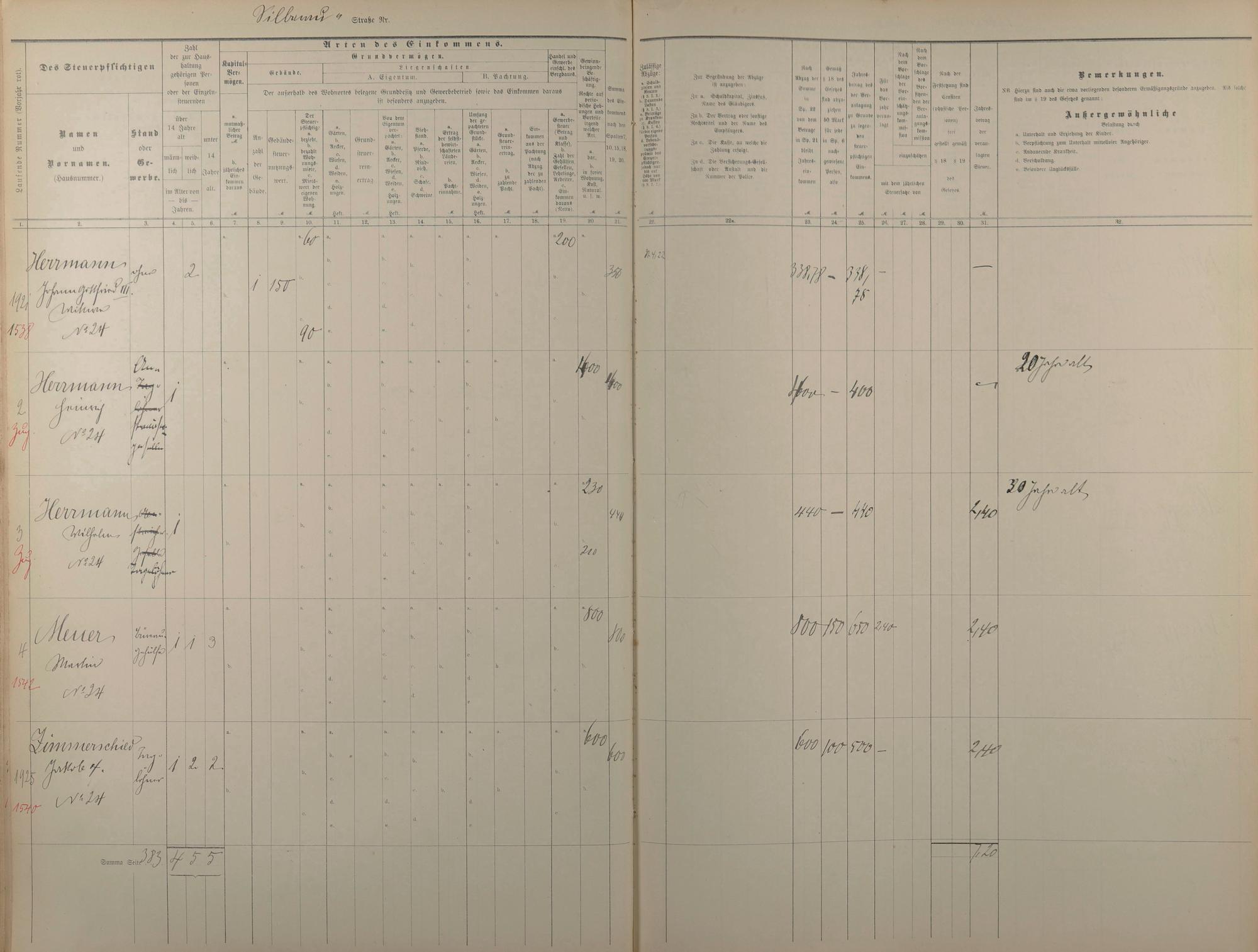 231: Personenverzeichnis und Einkommenssteuerliste 1893 nach Straßen