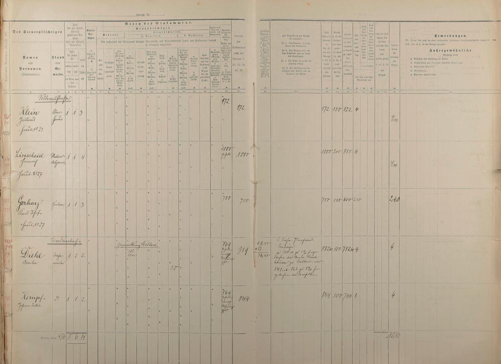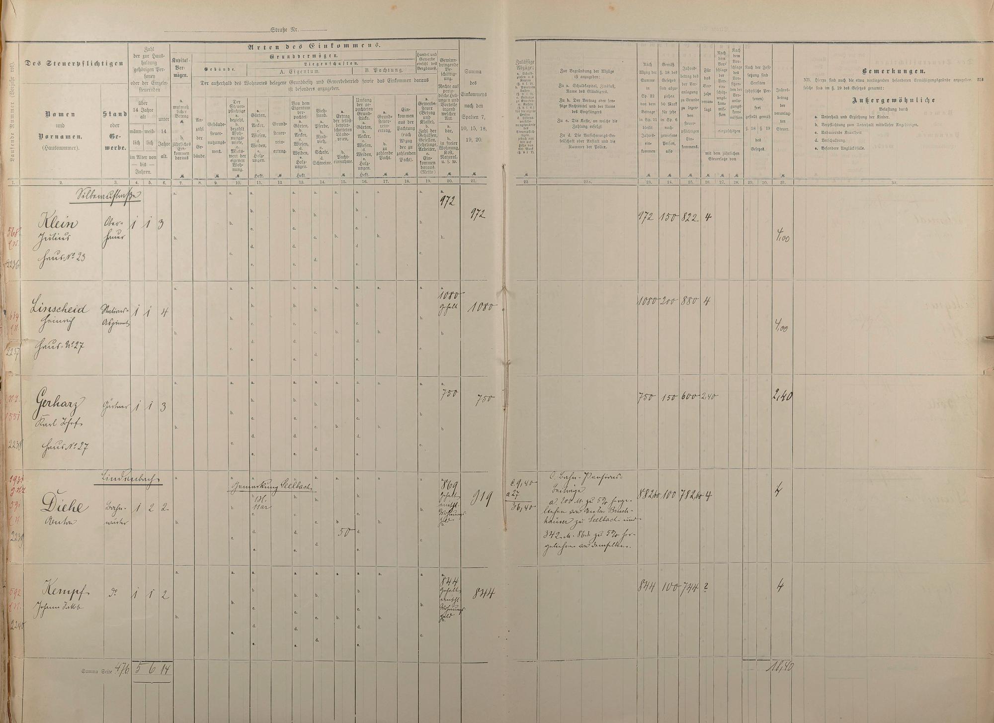 Personenverzeichnis und Einkommenssteuerliste 1893 nach Straßen