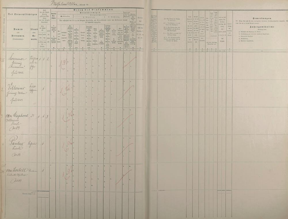 Personenverzeichnis und Einkommenssteuerliste 1893 nach Straßen