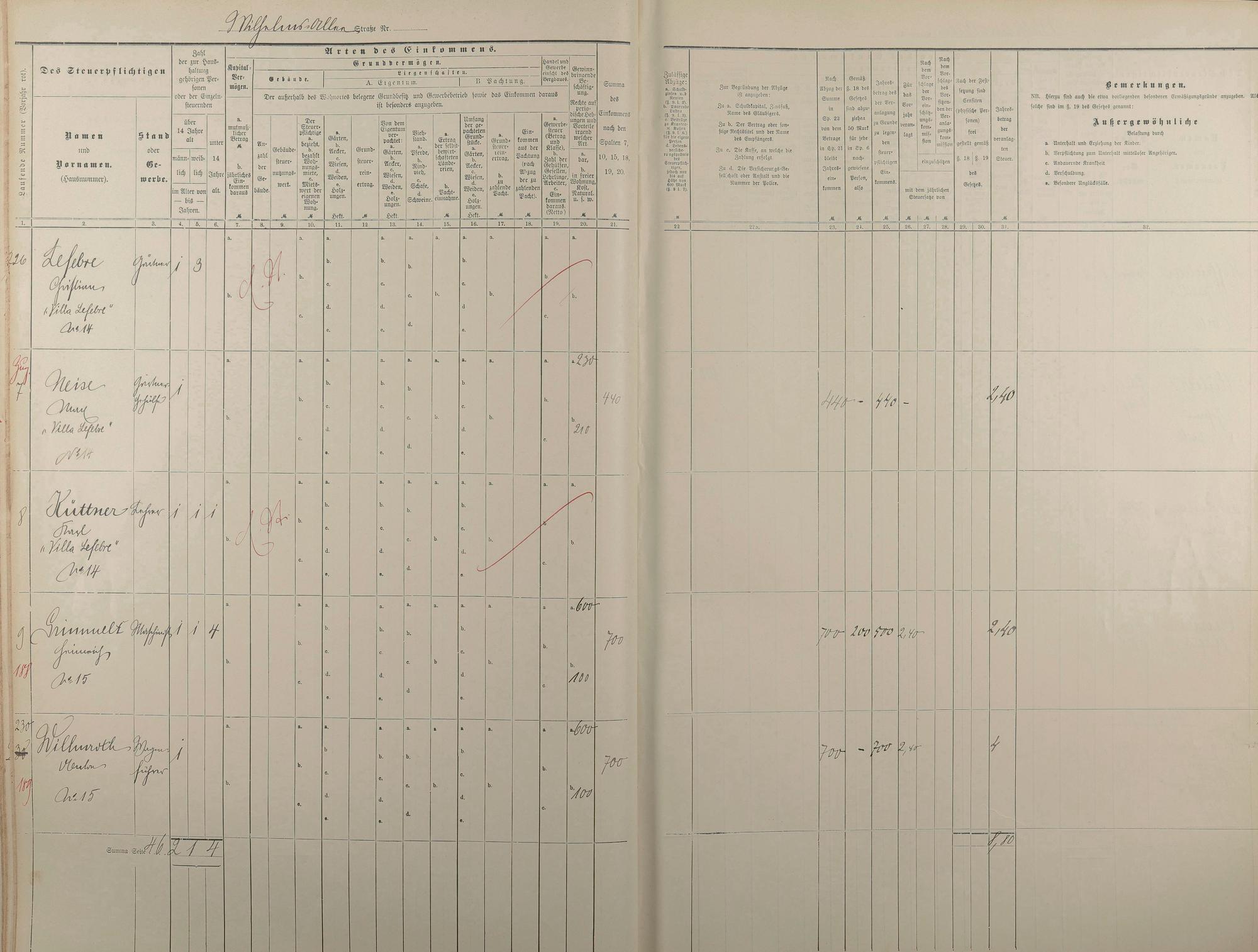 Personenverzeichnis und Einkommenssteuerliste 1893 nach Straßen