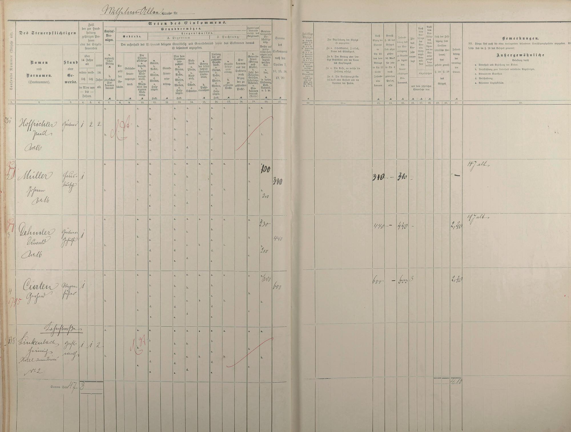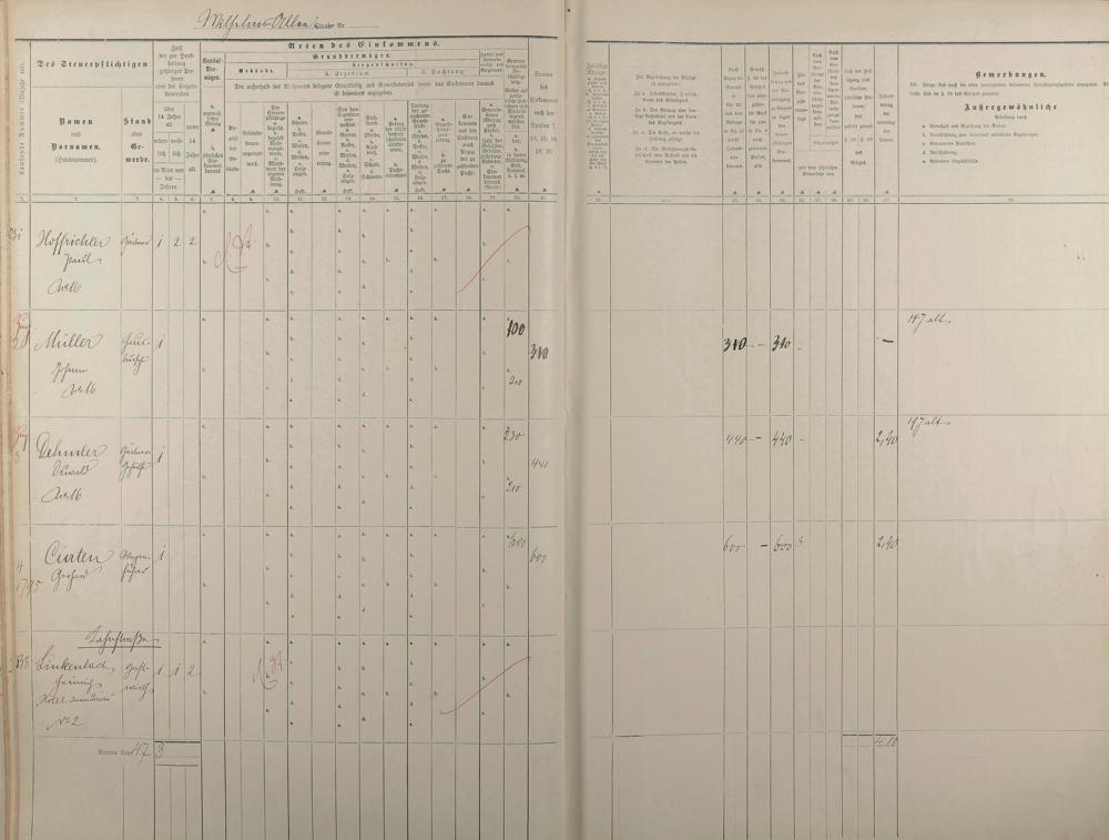 Personenverzeichnis und Einkommenssteuerliste 1893 nach Straßen