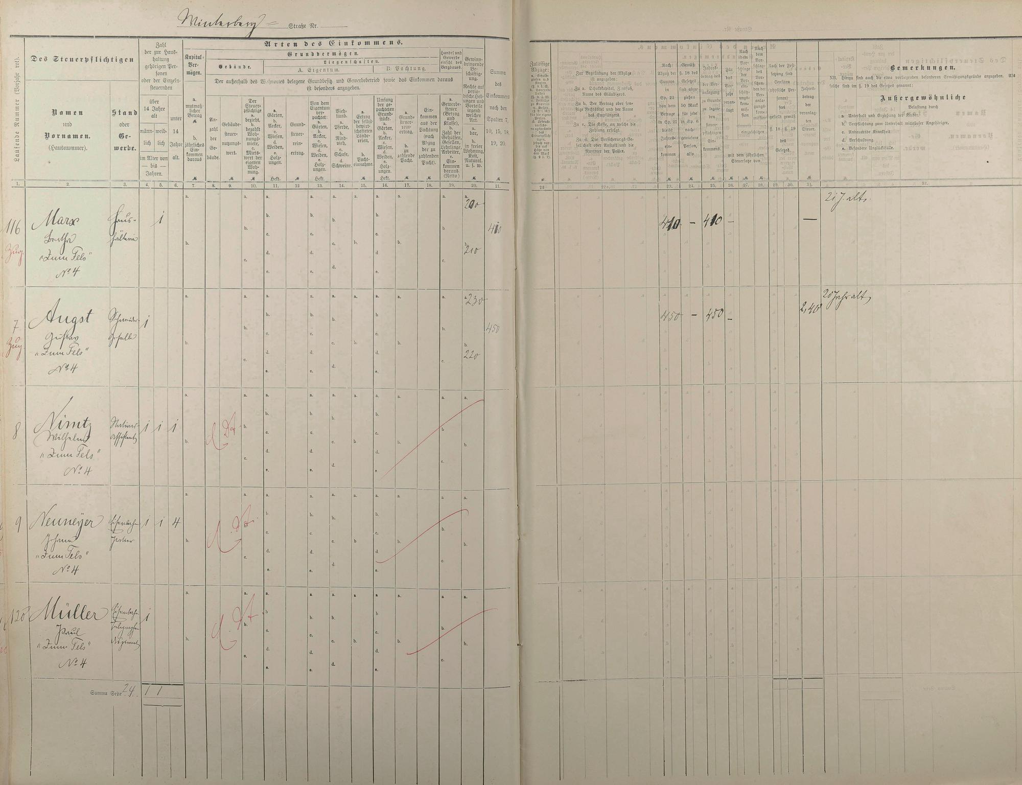 Personenverzeichnis und Einkommenssteuerliste 1893 nach Straßen