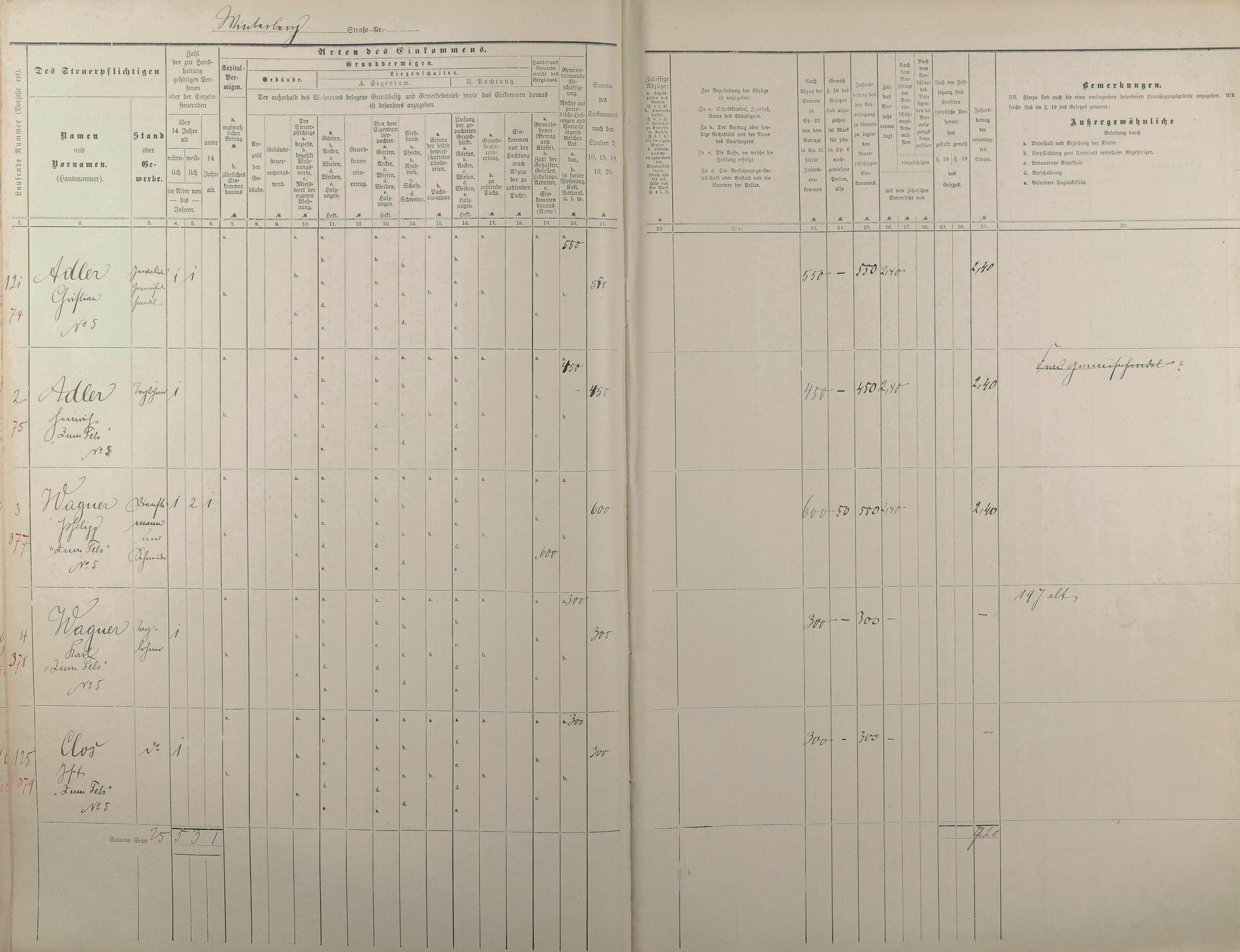 Personenverzeichnis und Einkommenssteuerliste 1893 nach Straßen