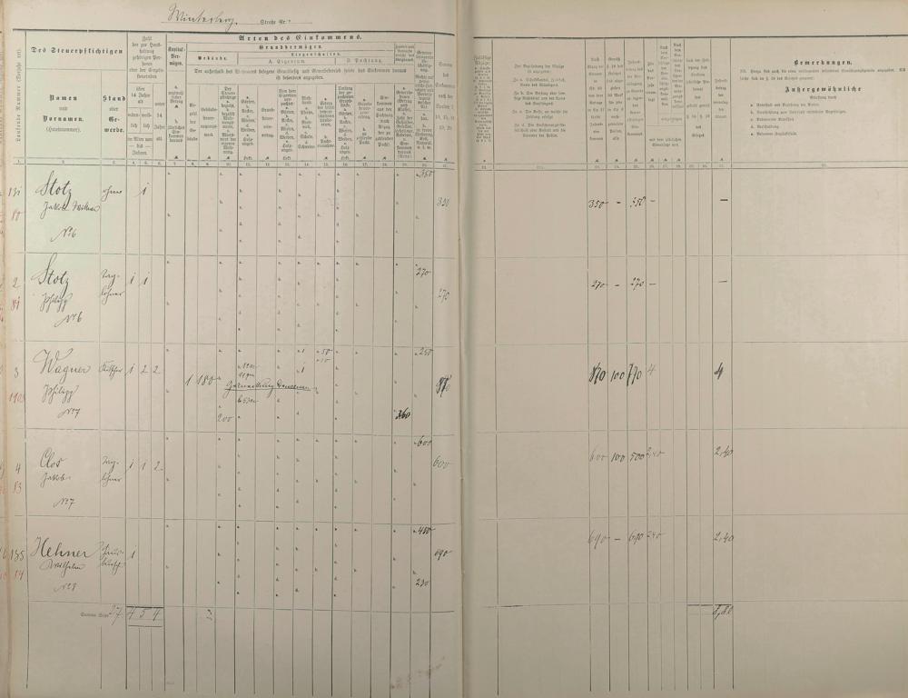 Personenverzeichnis und Einkommenssteuerliste 1893 nach Straßen