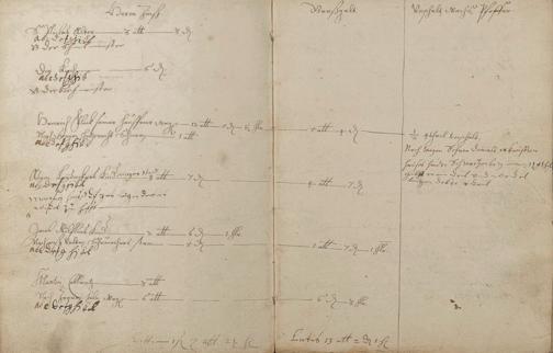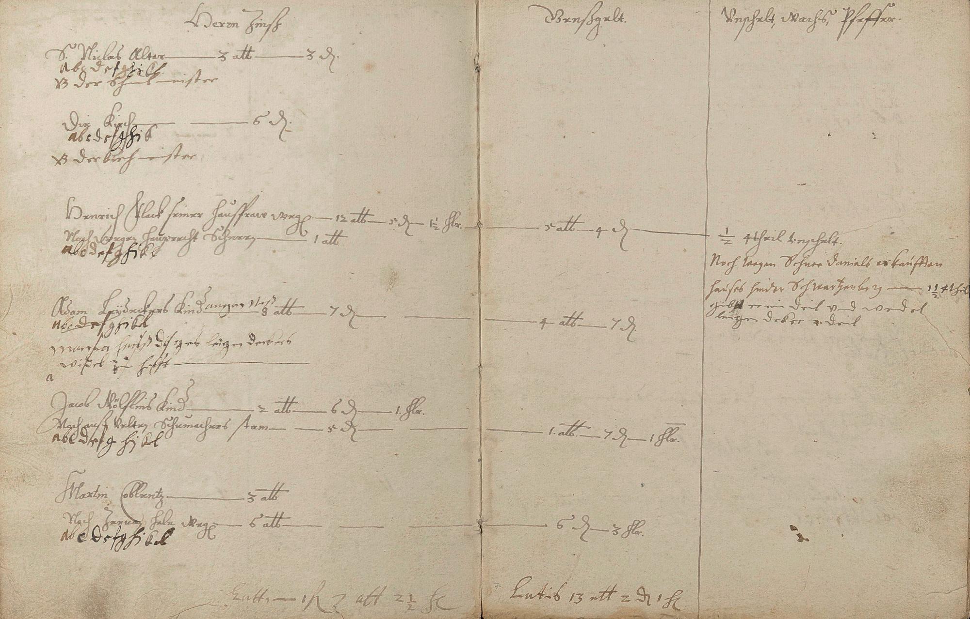 Herrenzinsregister (Zinsen, Unschlitt - Talg, Gänse, Wachs, Pfeffer und andere Abgaben)1638 erneuert durch den Gerichtsschultheiß Johann Philipp Hirtz und die Gerichtsschöffen Hans Endres Becker, Reinhard Kühnheinczen, Johann Stumpel und Hans Adam Winden - Schreiber der Pastor zu Schweighausen und Becheln Matthias Weber