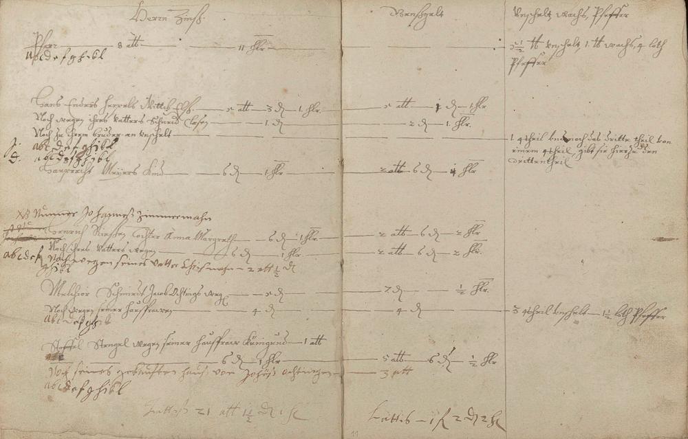 Herrenzinsregister (Zinsen, Unschlitt - Talg, Gänse, Wachs, Pfeffer und andere Abgaben)1638 erneuert durch den Gerichtsschultheiß Johann Philipp Hirtz und die Gerichtsschöffen Hans Endres Becker, Reinhard Kühnheinczen, Johann Stumpel und Hans Adam Winden - Schreiber der Pastor zu Schweighausen und Becheln Matthias Weber