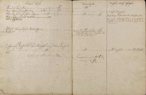 Herrenzinsregister (Zinsen, Unschlitt - Talg, Gänse, Wachs, Pfeffer und andere Abgaben)1638 erneuert durch den Gerichtsschultheiß Johann Philipp Hirtz und die Gerichtsschöffen Hans Endres Becker, Reinhard Kühnheinczen, Johann Stumpel und Hans Adam Winden - Schreiber der Pastor zu Schweighausen und Becheln Matthias Weber