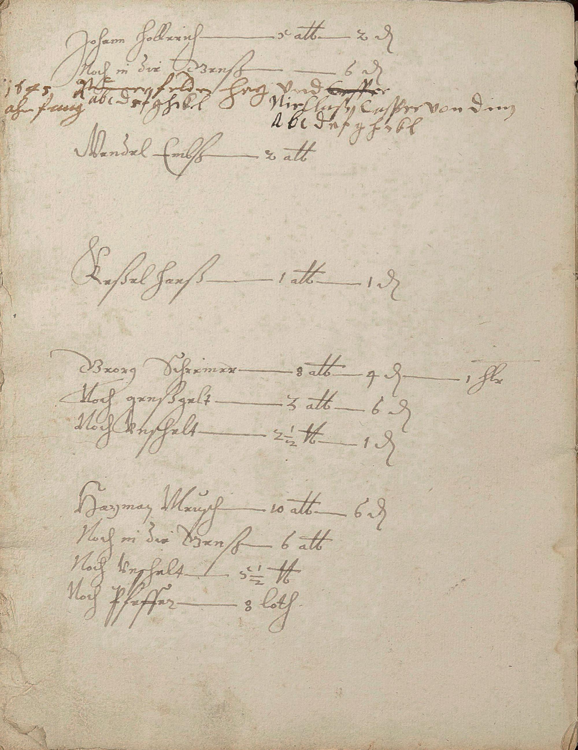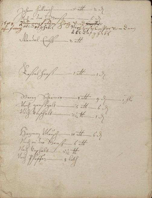 Herrenzinsregister (Zinsen, Unschlitt - Talg, Gänse, Wachs, Pfeffer und andere Abgaben)1638 erneuert durch den Gerichtsschultheiß Johann Philipp Hirtz und die Gerichtsschöffen Hans Endres Becker, Reinhard Kühnheinczen, Johann Stumpel und Hans Adam Winden - Schreiber der Pastor zu Schweighausen und Becheln Matthias Weber