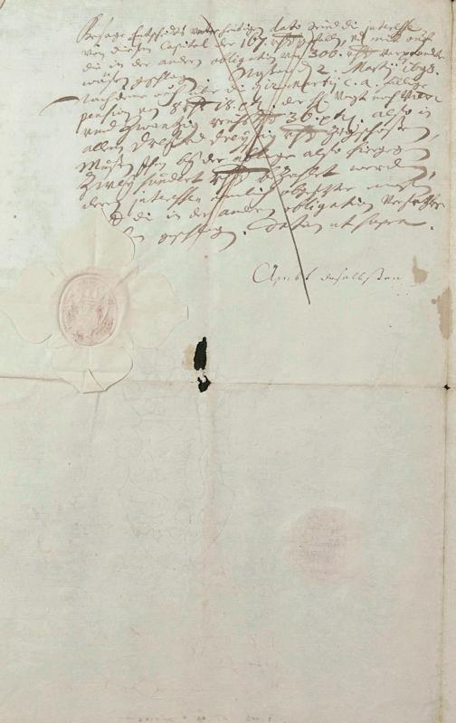 Die Gemeinde Dausenau bekennt Johann Nikolaus Hermann, Damstädtischem Vogt zu Ems, 167 Rtlr. zu schulden. 1693 März 8/12 erhöht das Amt Nassau die Schuld wegen rückständiger Zinsen auf 2oo Reichsthaler.Ems.....Siegel des Gerichts Dausenau: Unterschriften des Schultheißen und der Schöffen.