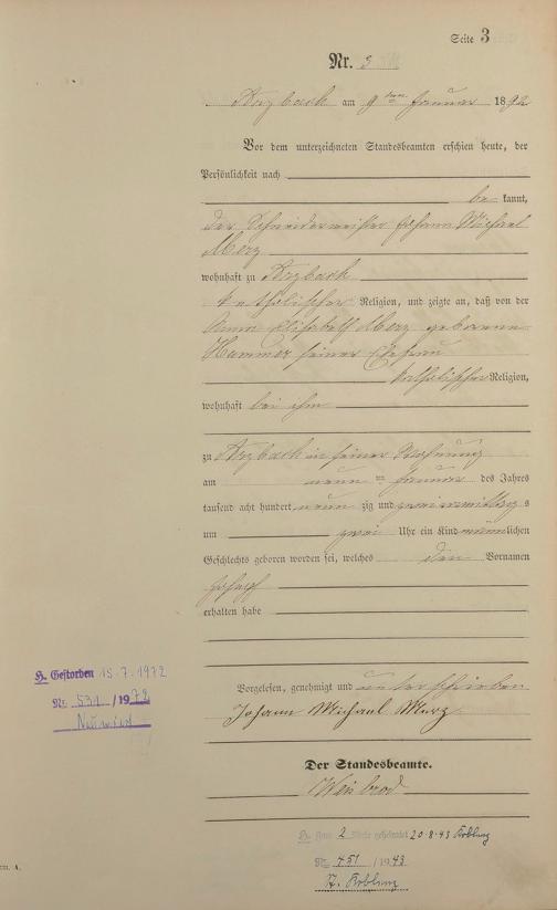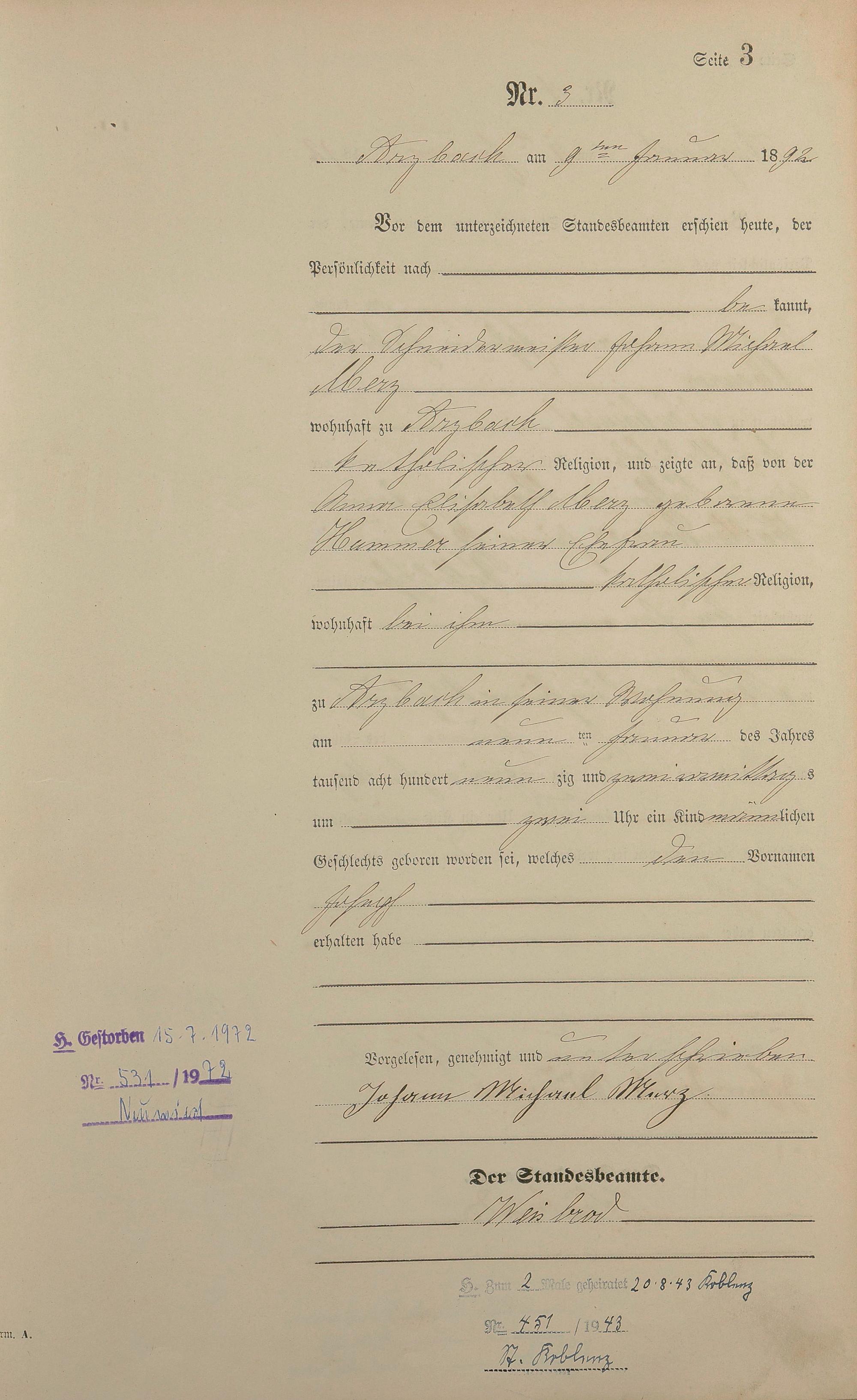 Geburtsregister 1892