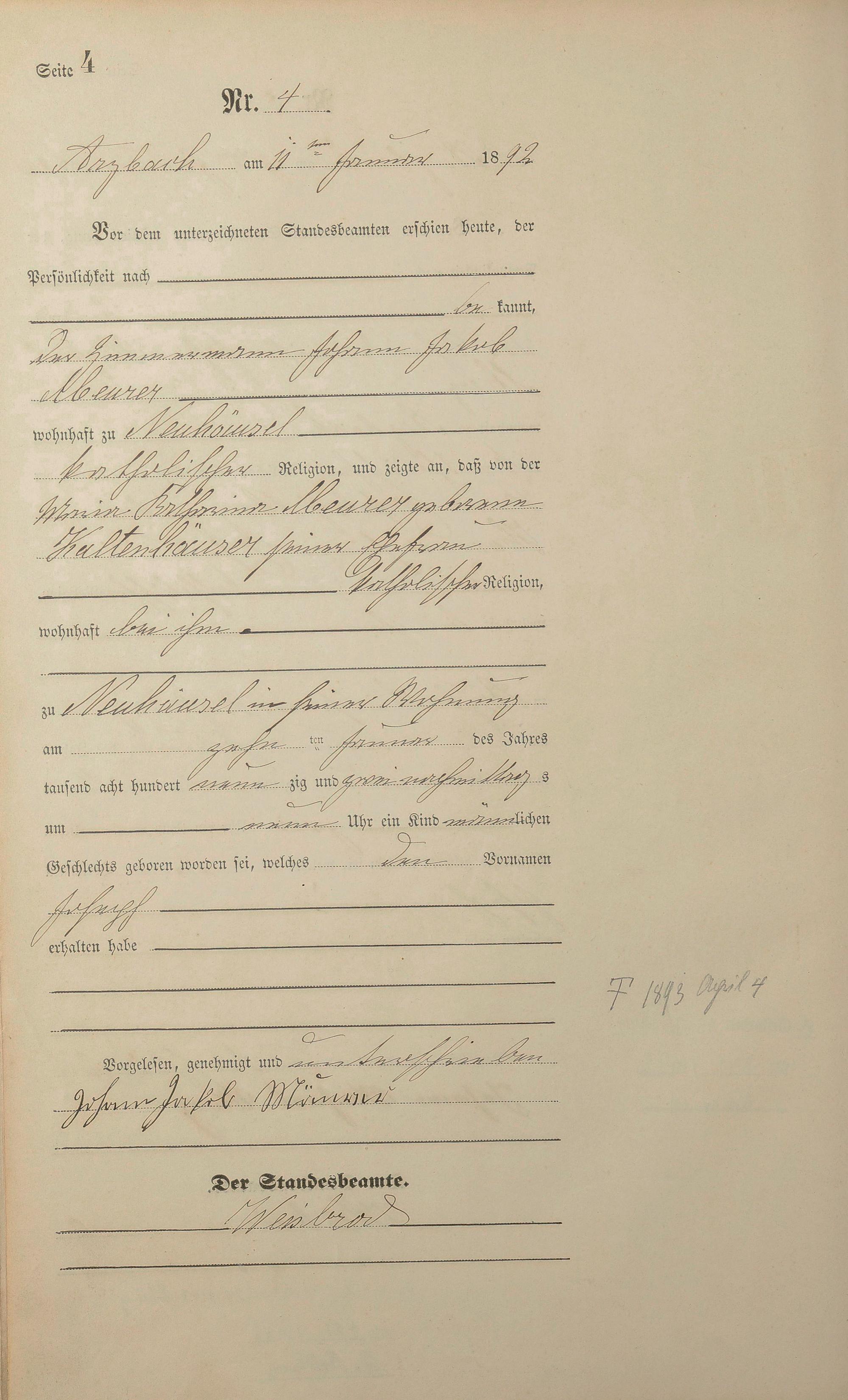 Geburtsregister 1892