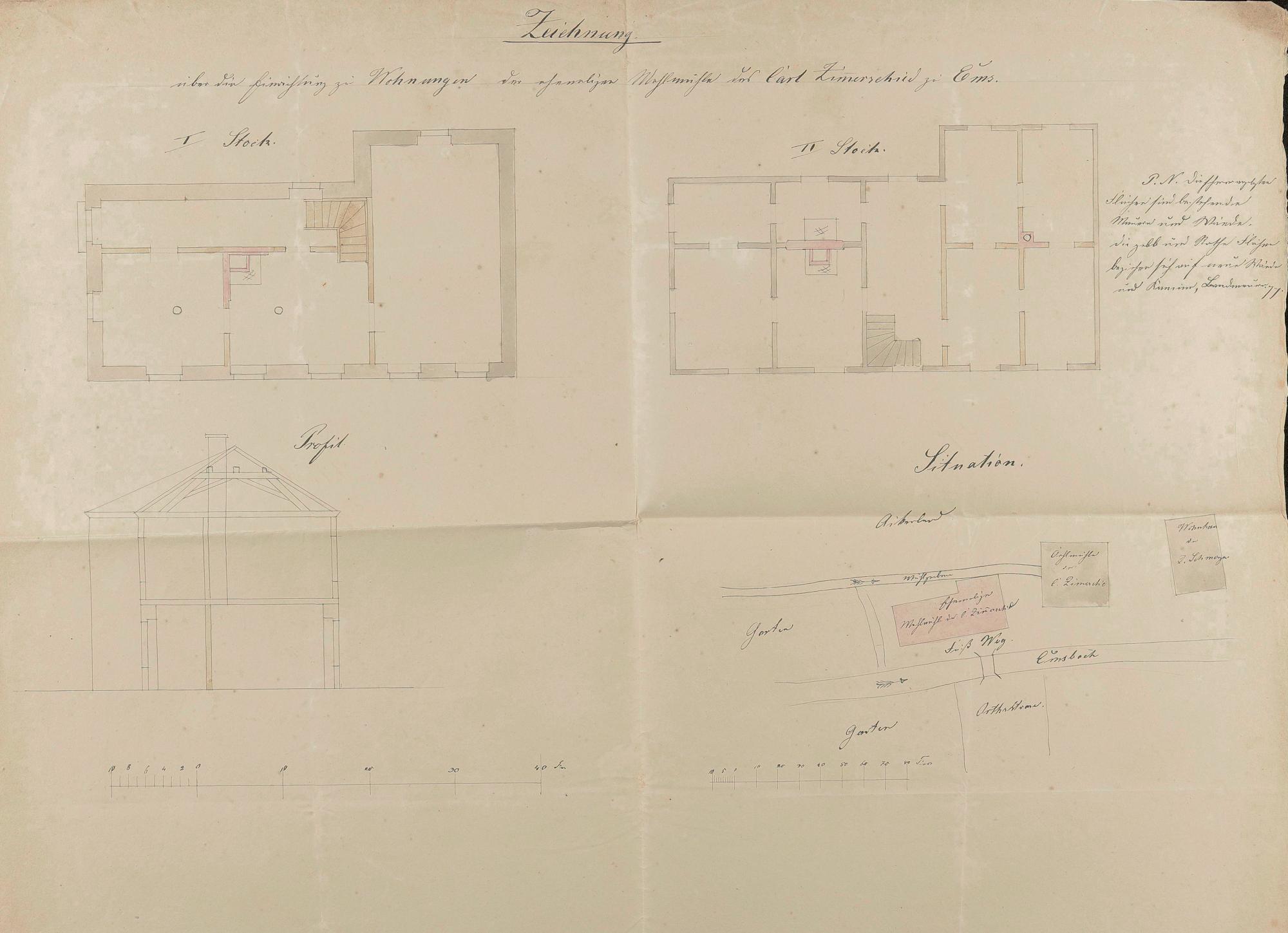 Umbau der Mahlmühle/Lohmühle in Wohnungen des Carl Zimmerschied III/Louis Bauer/Jacob Schwenzer/Emser Blei- und Silberwerk Bad Ems An der Wipsch Flur Nr.