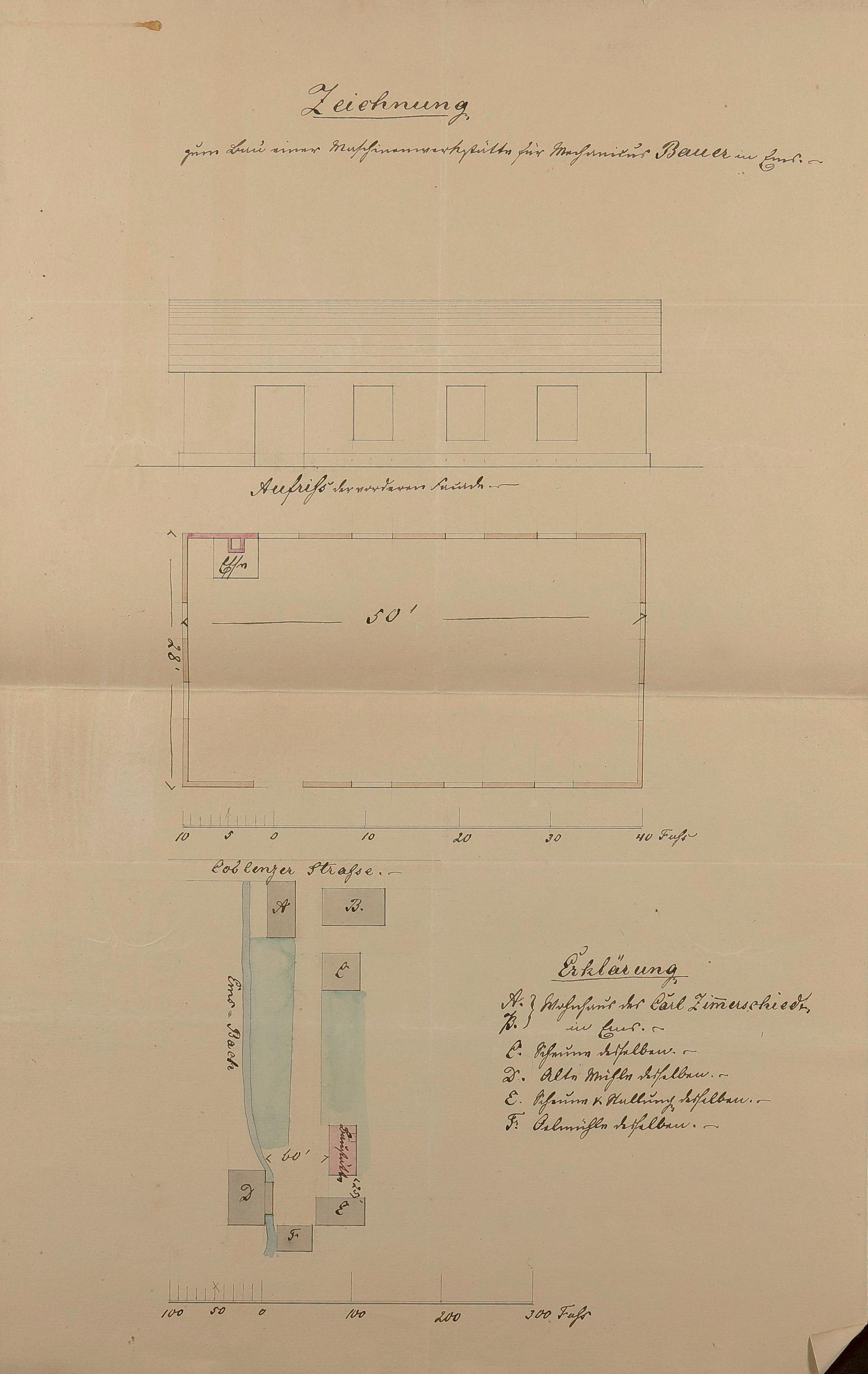 Maschinenwerkstatt in der Mahlmühle/Lohmühle des Carl Zimmerschied III/Louis Bauer/Jacob Schwenzer/Emser Blei- und Silberwerk Bad Ems An der Wipsch Flur Nr.