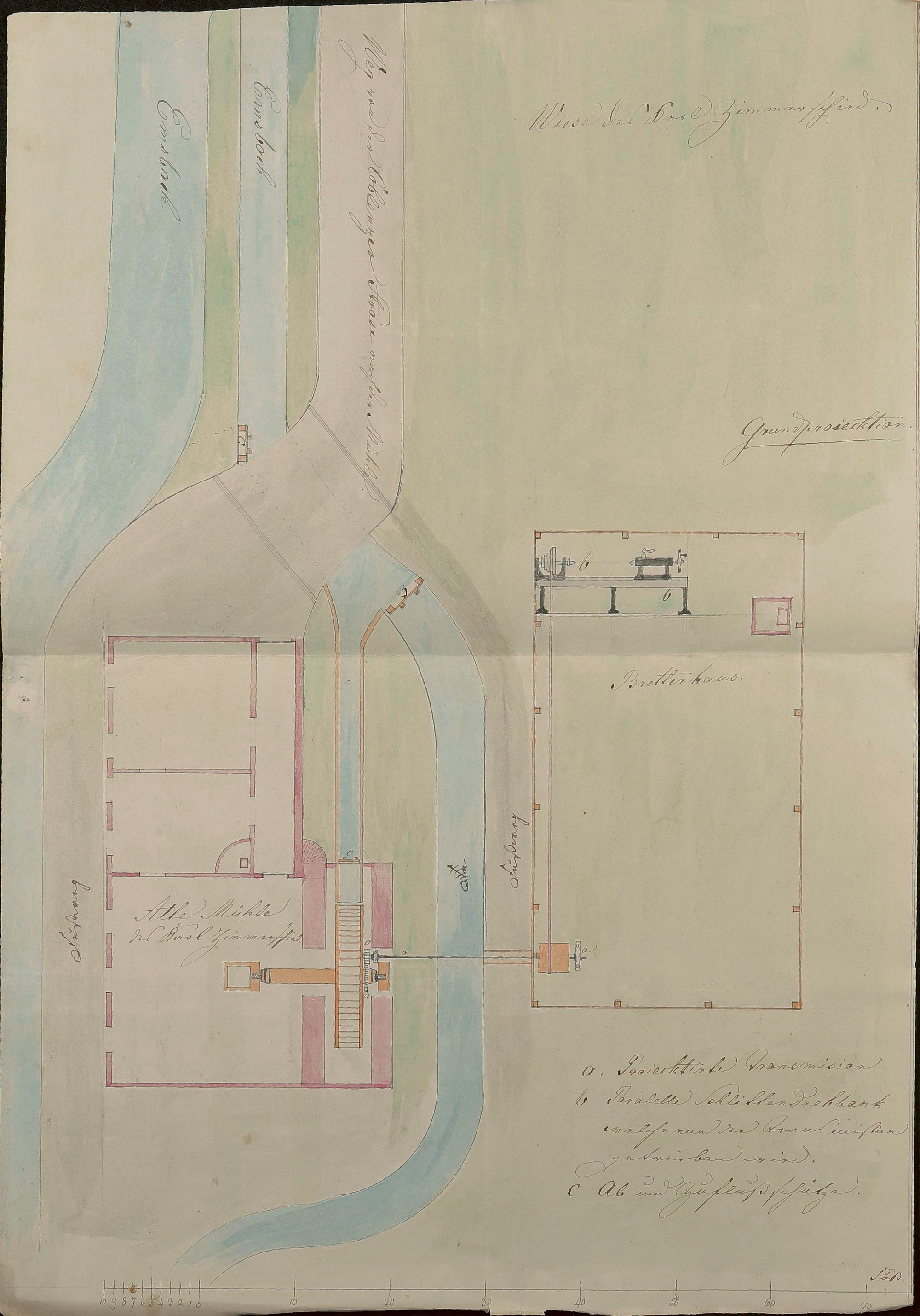 Maschinenwerkstatt in der Mahlmühle/Lohmühle des Carl Zimmerschied III/Louis Bauer/Jacob Schwenzer/Emser Blei- und Silberwerk Bad Ems An der Wipsch Flur Nr.