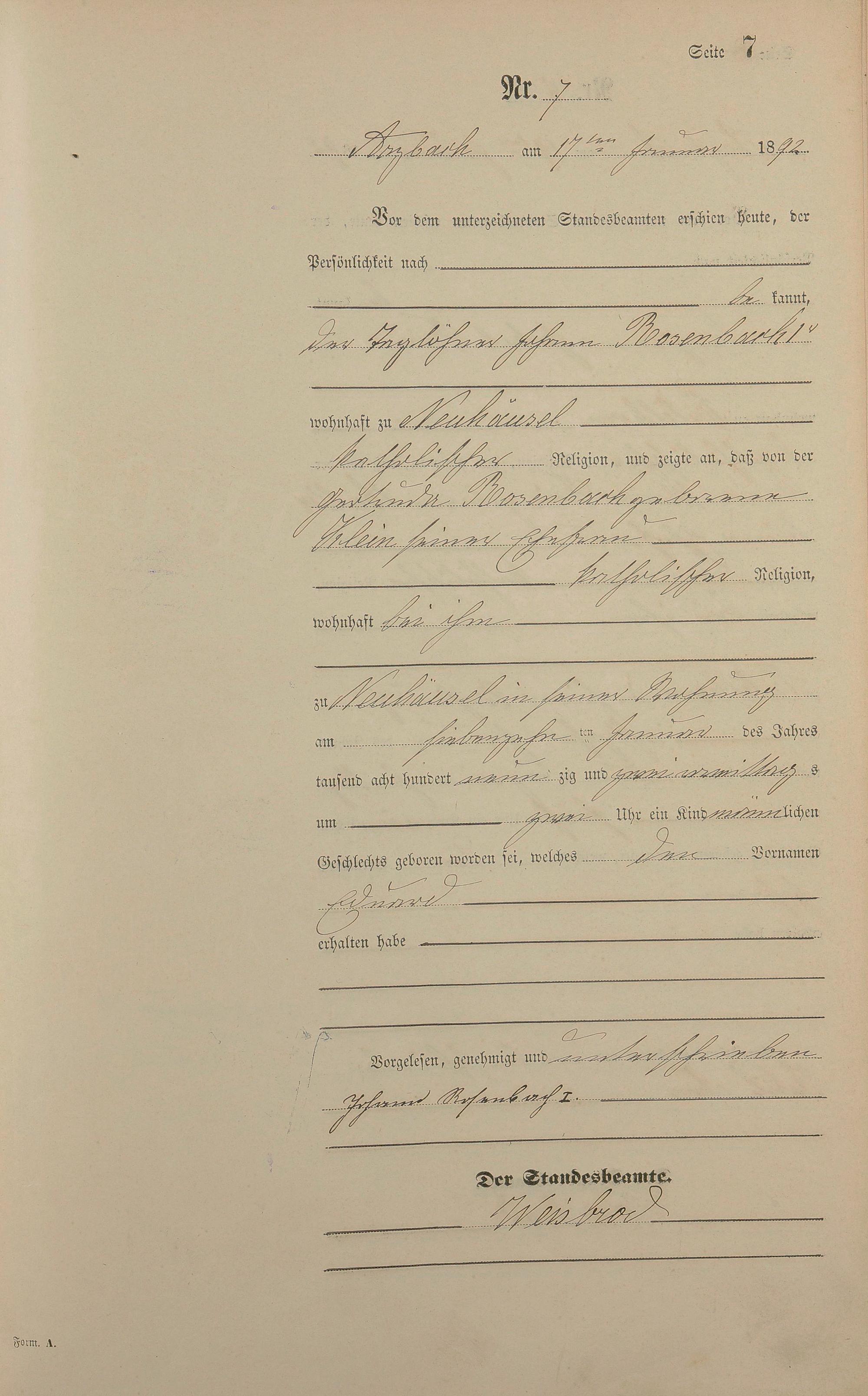 Geburtsregister 1892