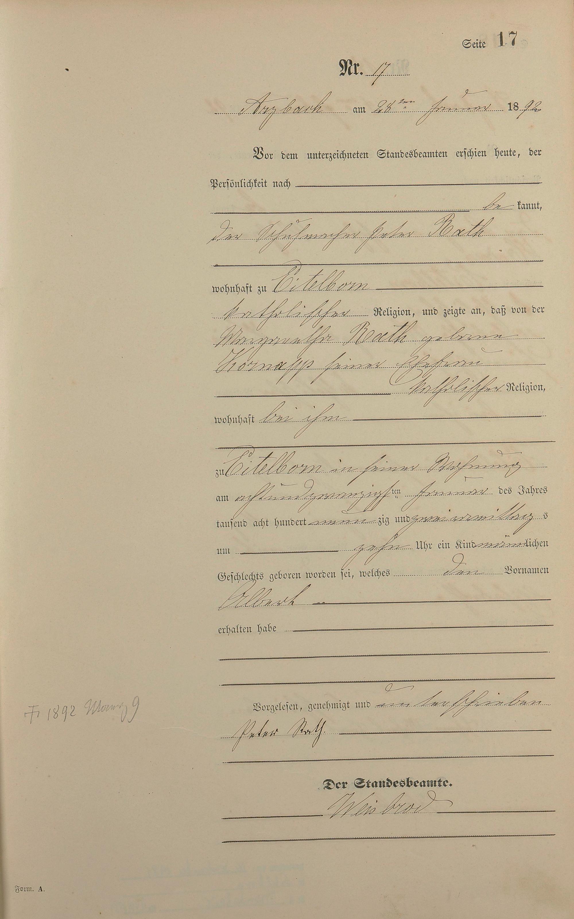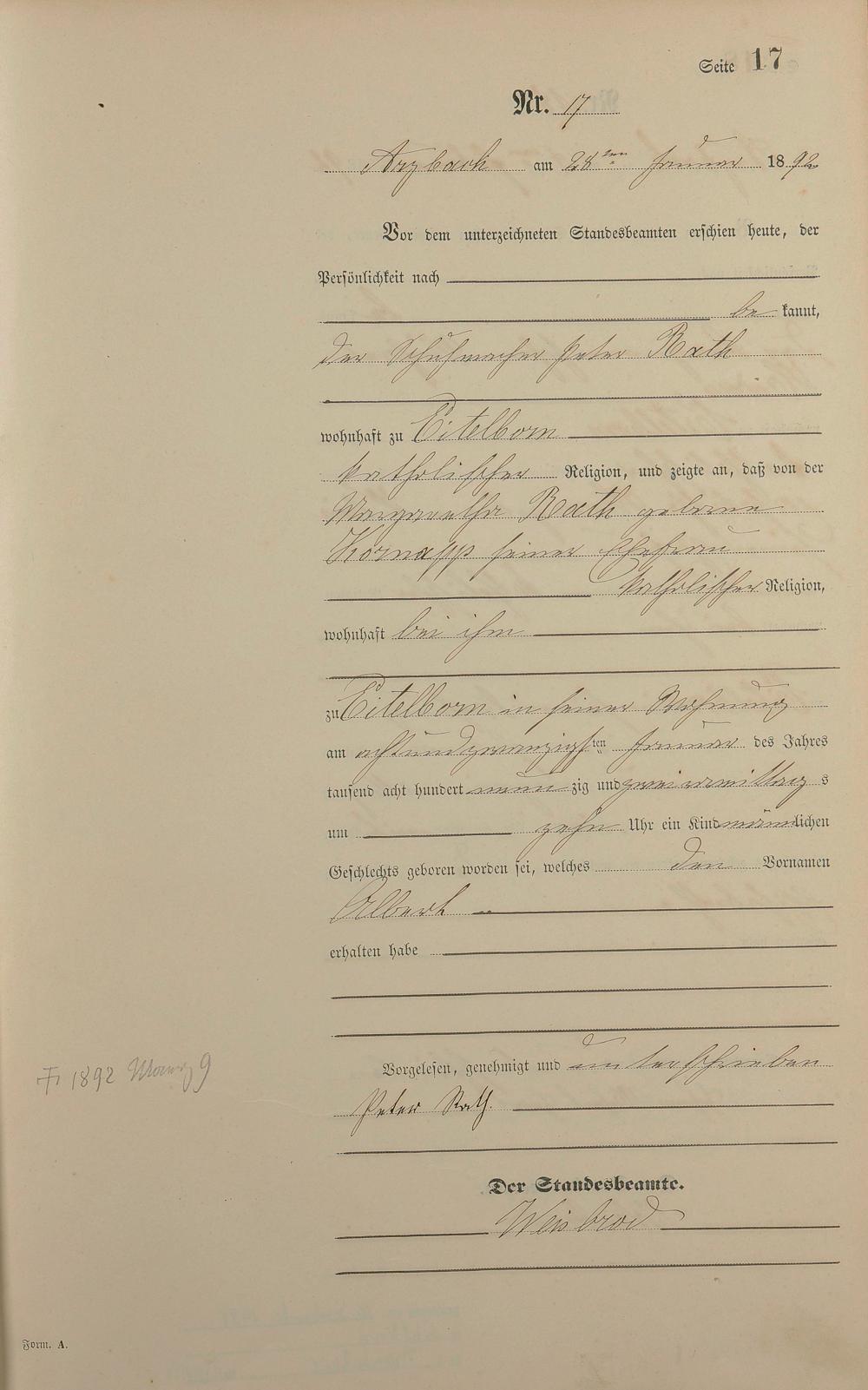 Geburtsregister 1892