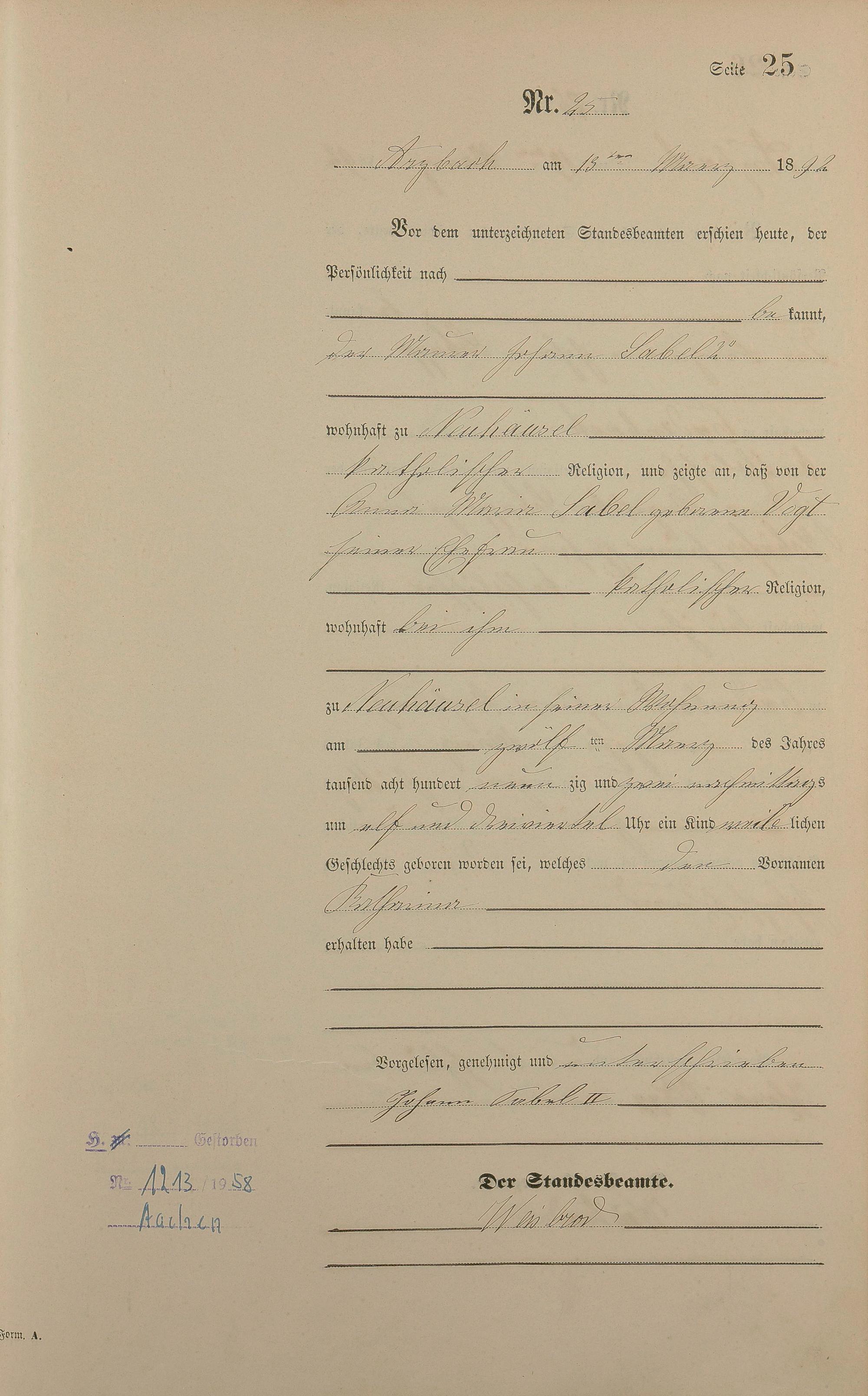 Geburtsregister 1892