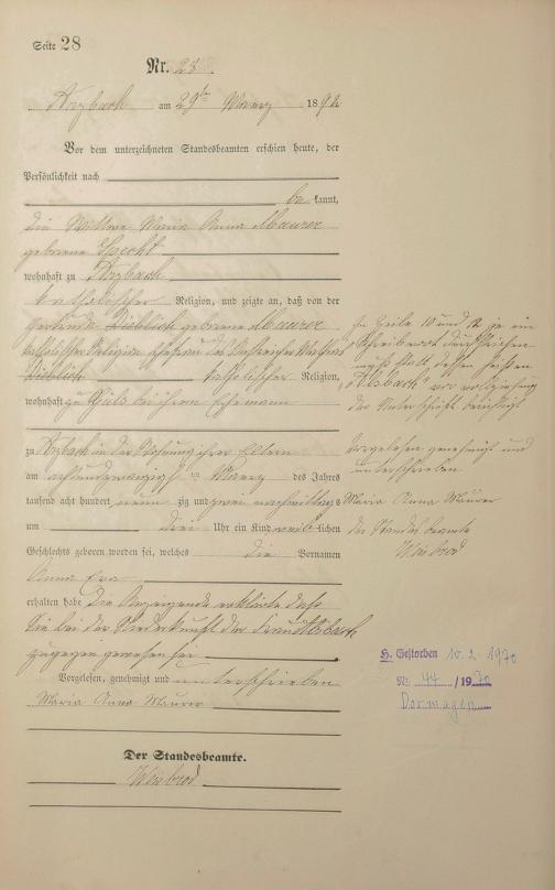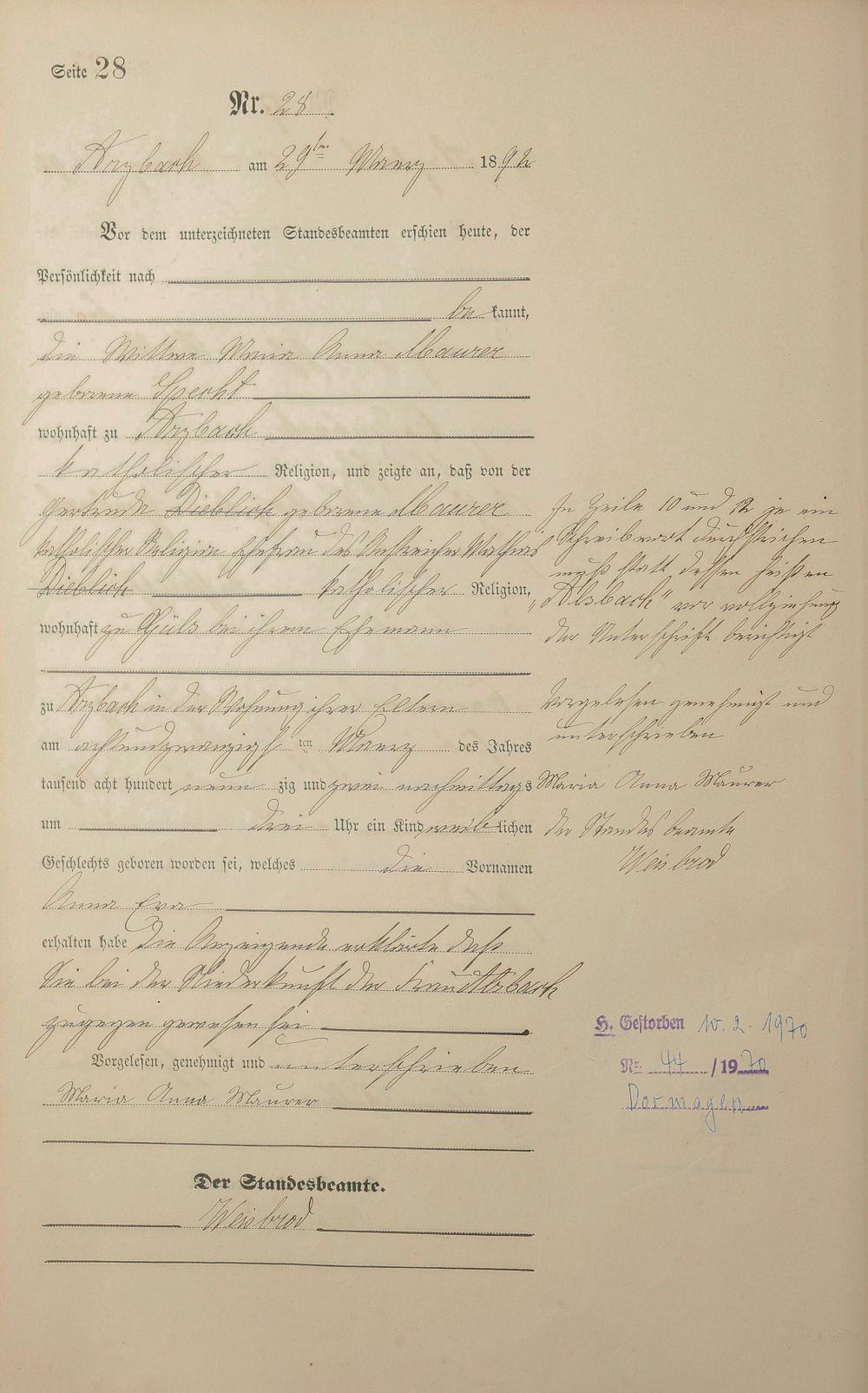 Geburtsregister 1892