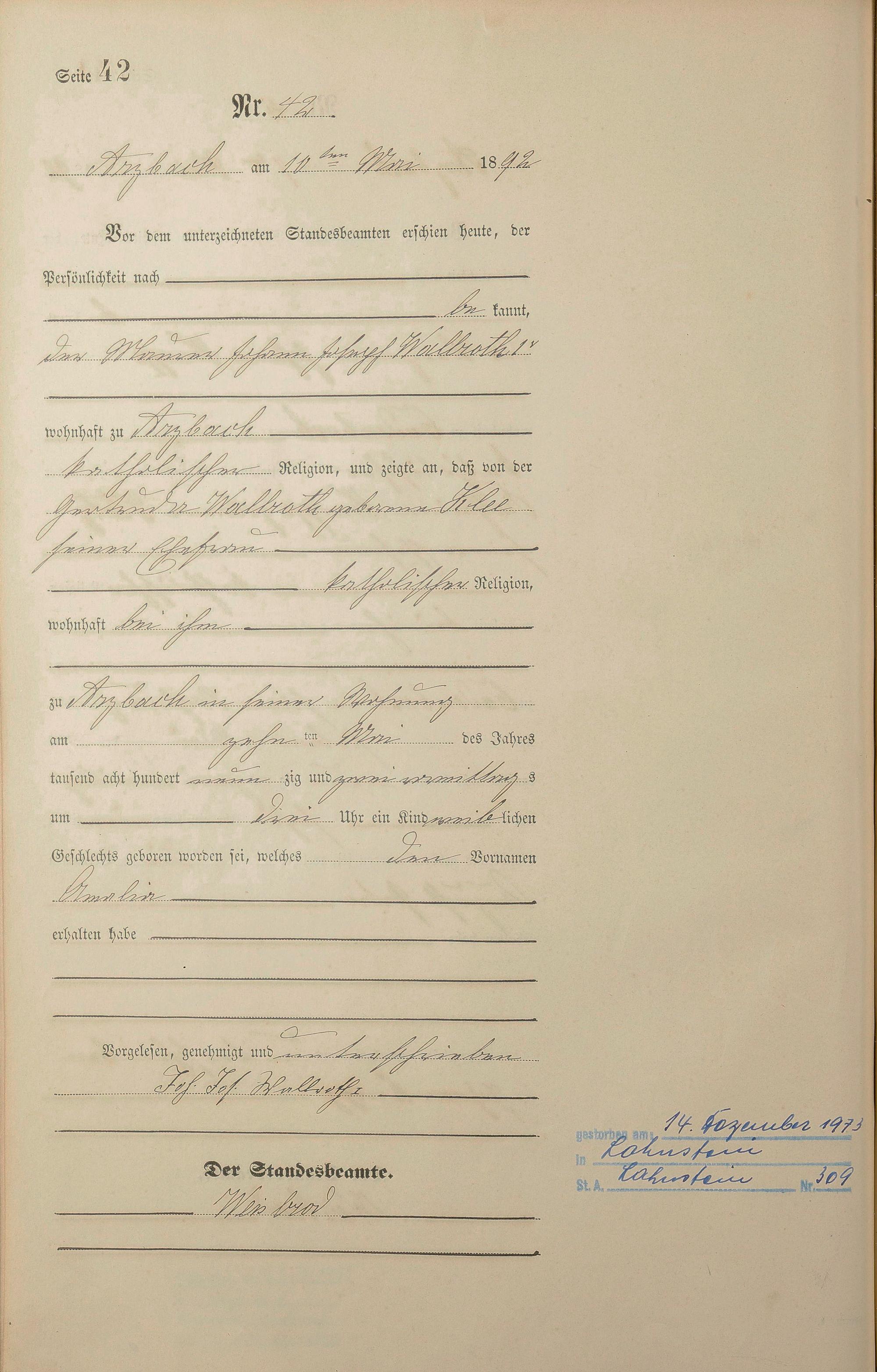 Geburtsregister 1892