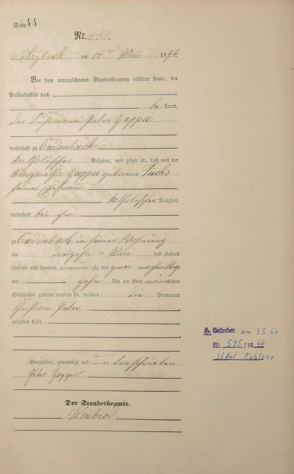 Geburtsregister 1892