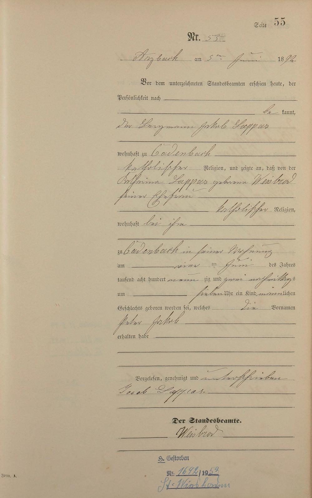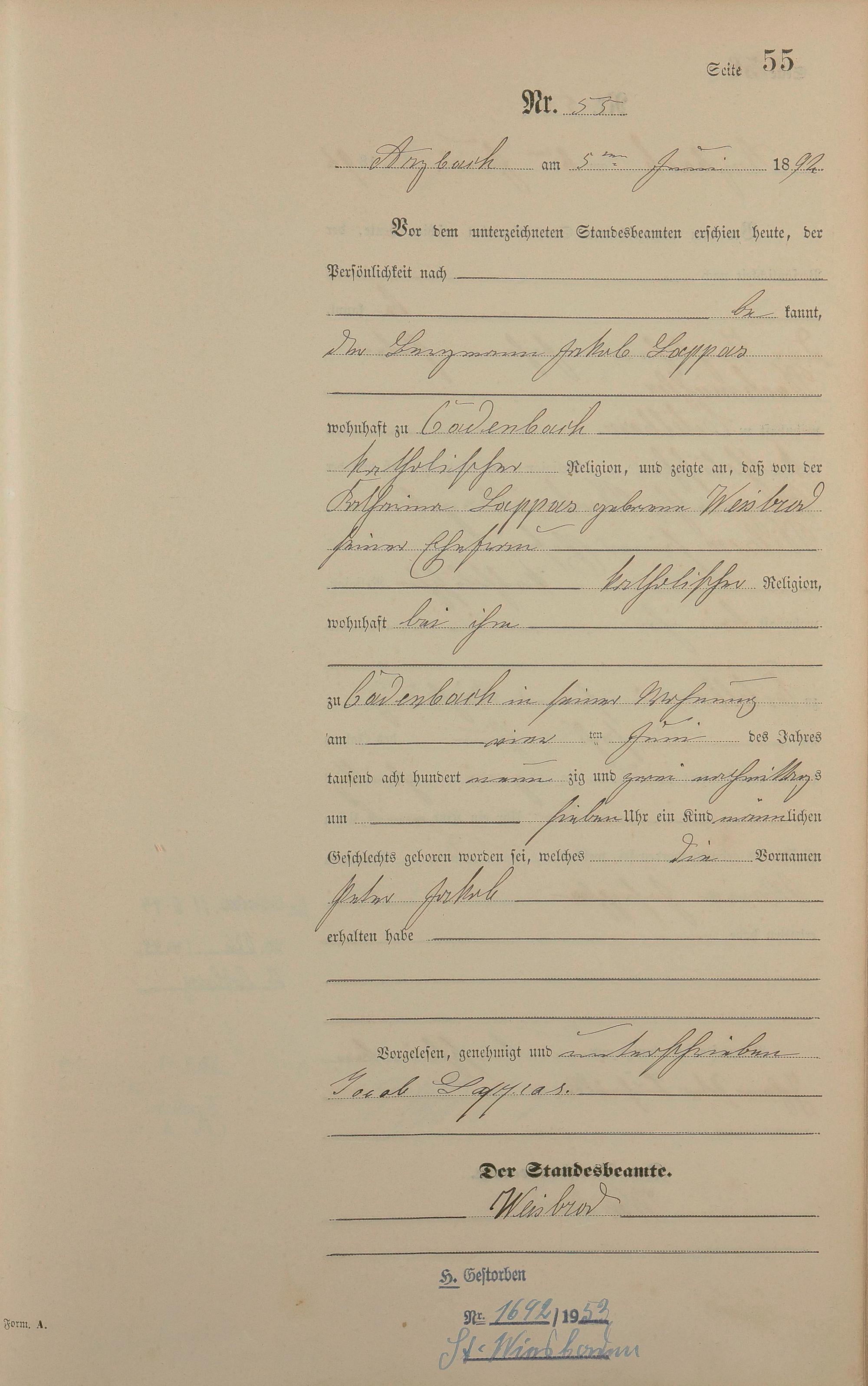 Geburtsregister 1892