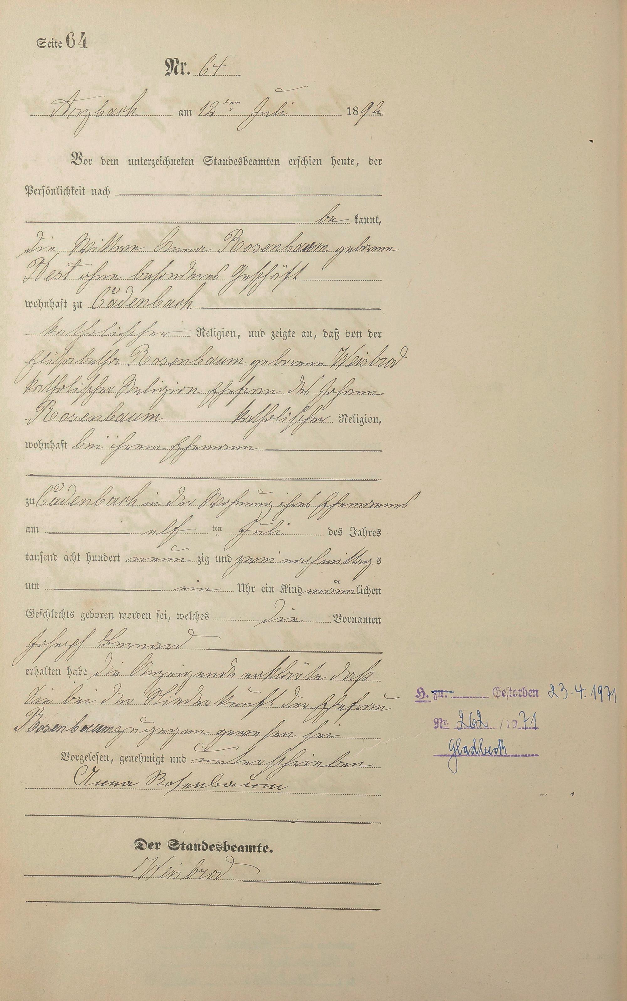 Geburtsregister 1892