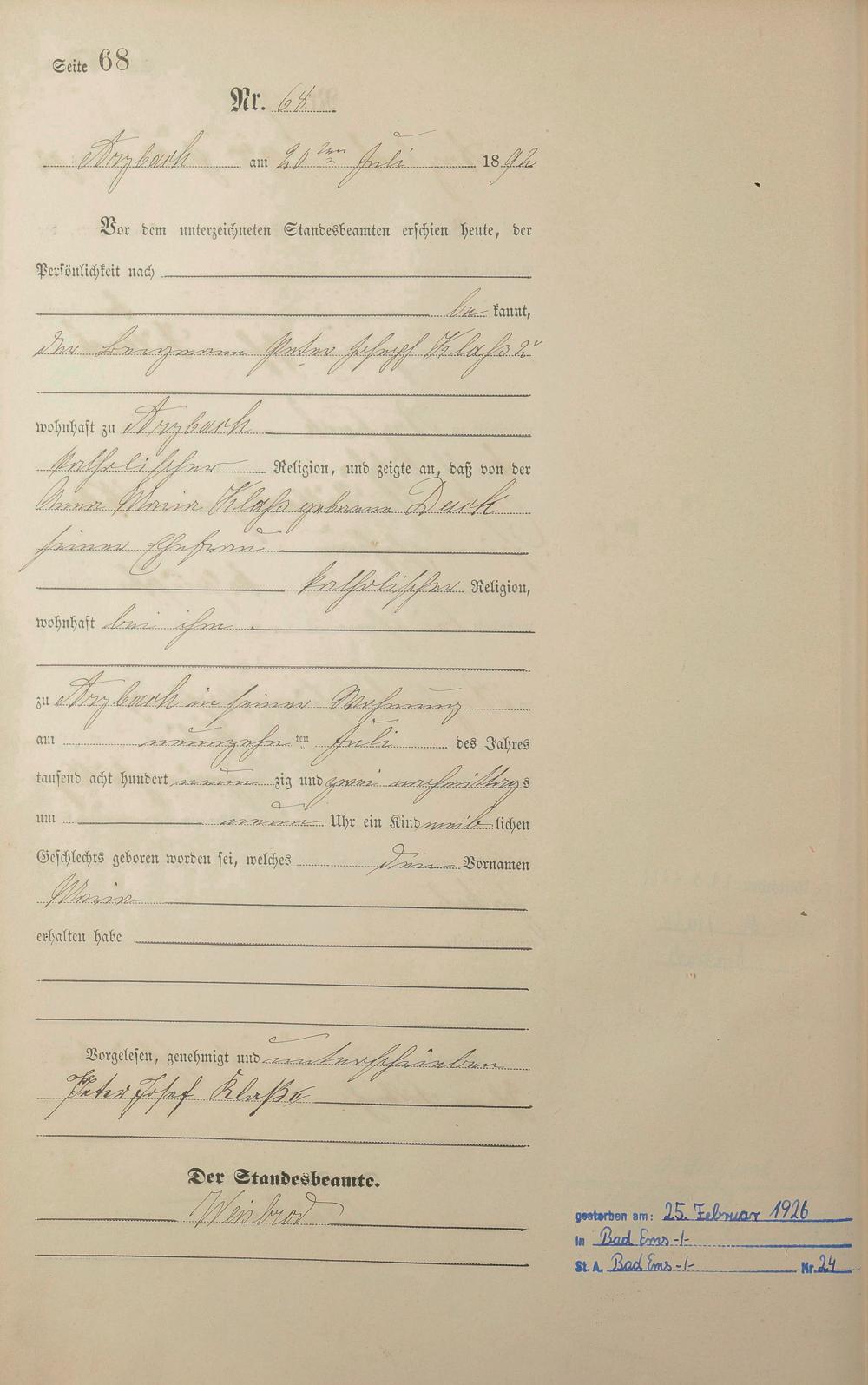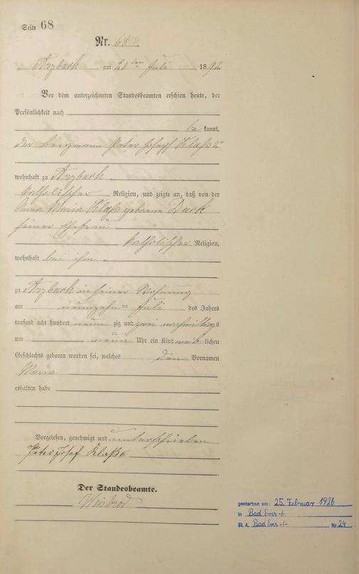 Geburtsregister 1892