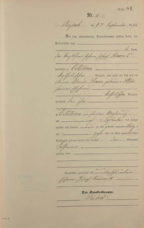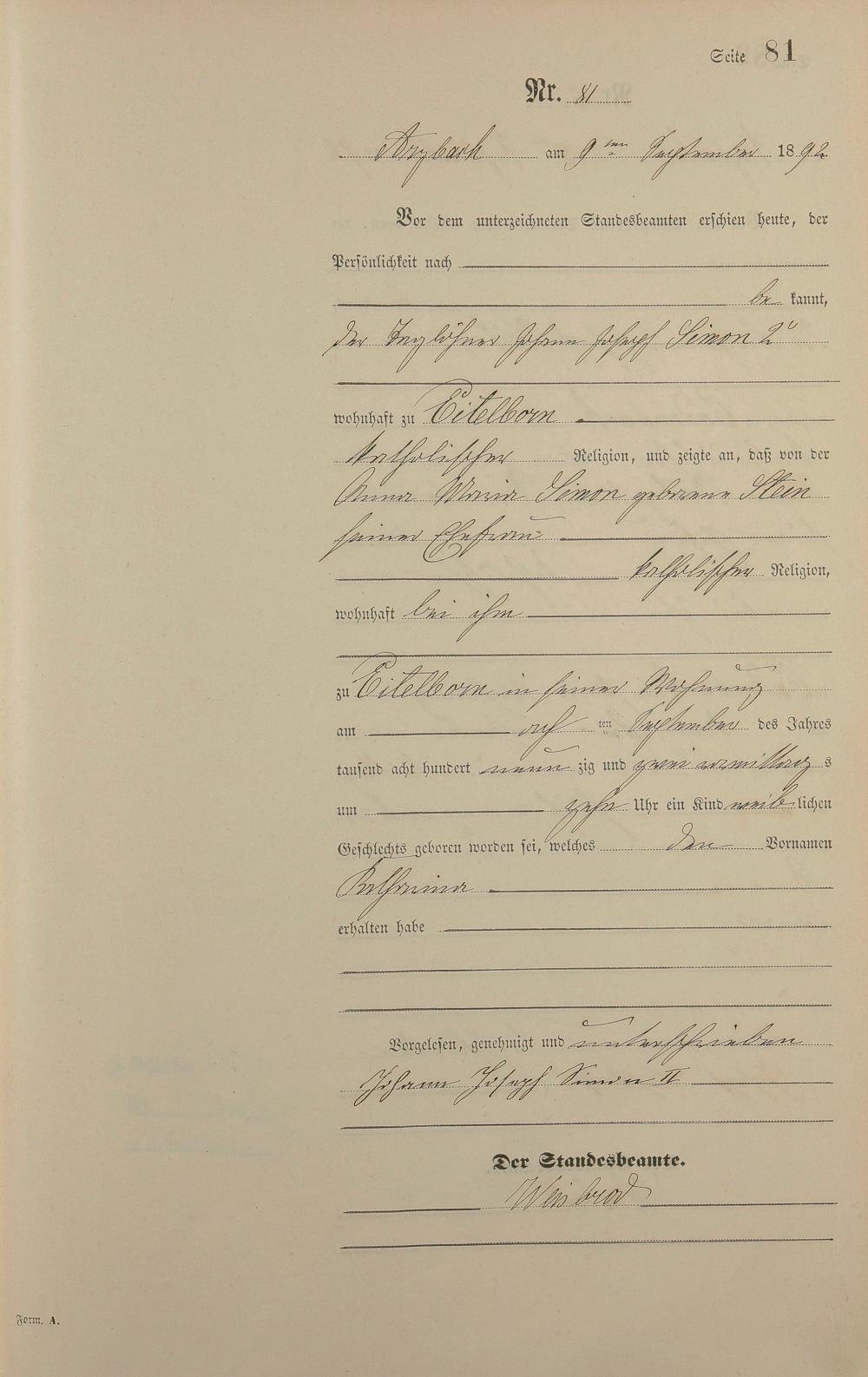 Geburtsregister 1892