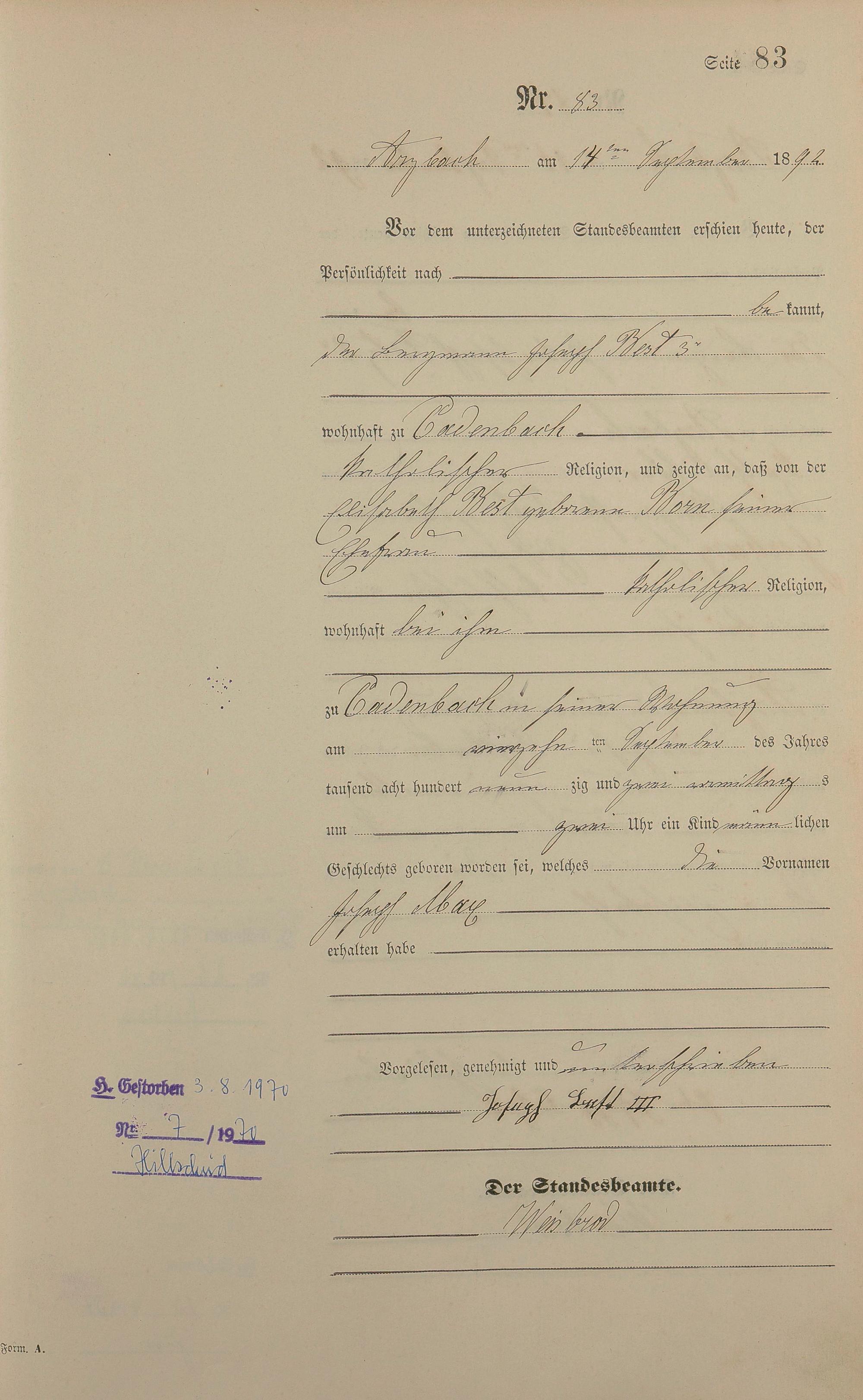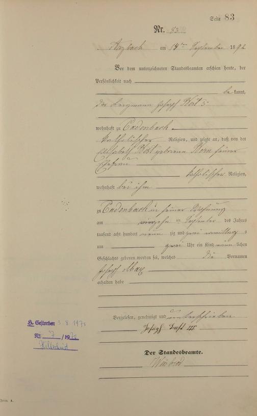 Geburtsregister 1892