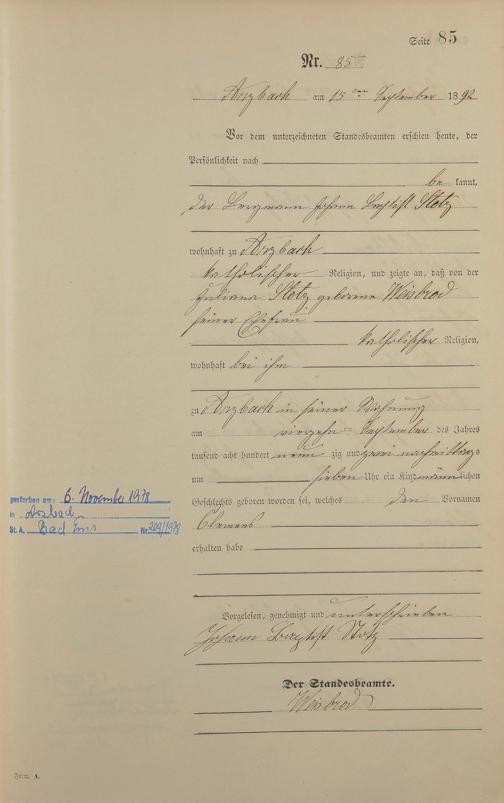 Geburtsregister 1892