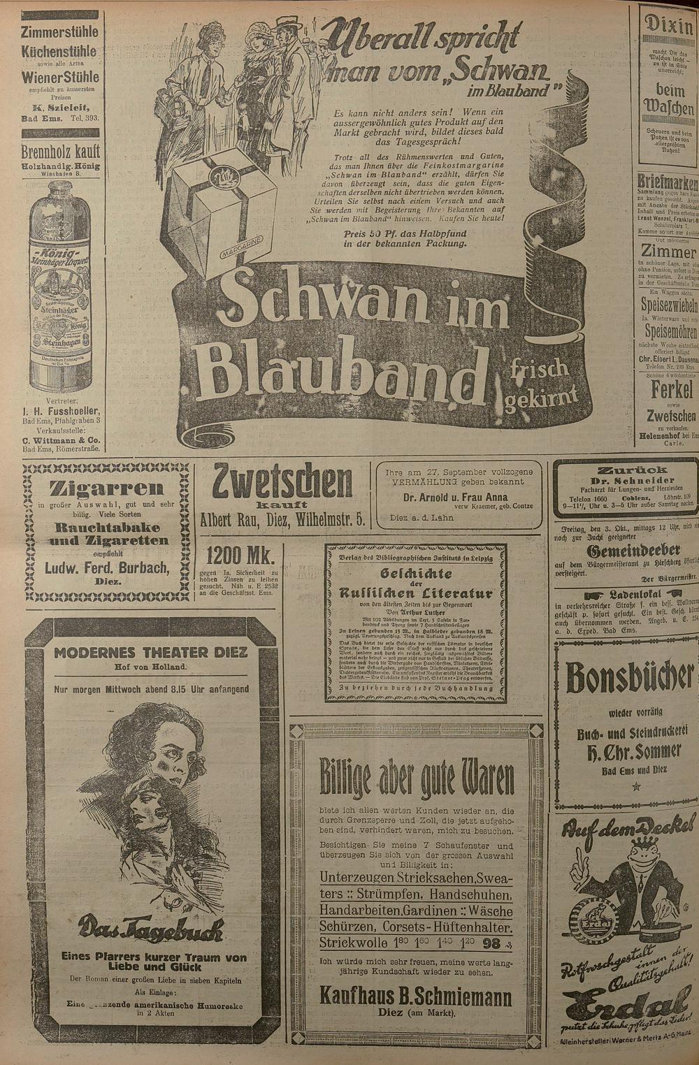 1924: Lahnbote bis 4. Apr. 1924/Emser Zeitung ab 5. Apr. 1924 - Nr. 10, 37 und 71...