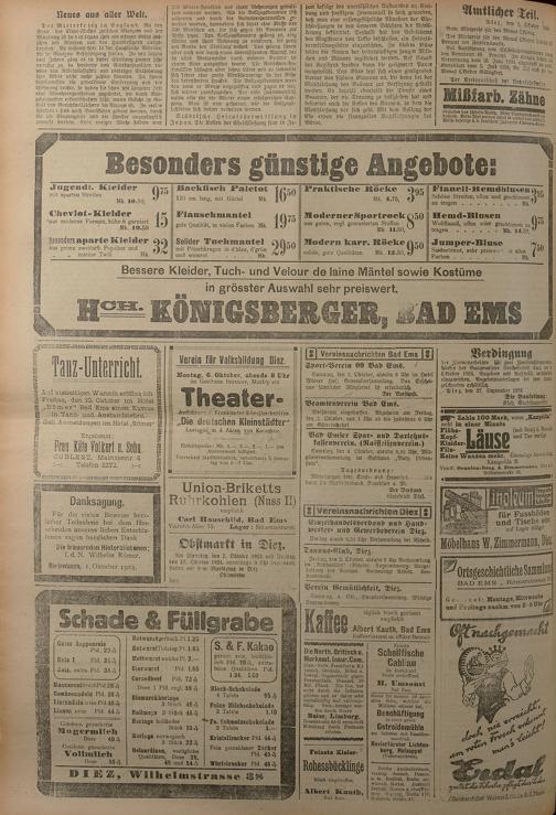 1924: Lahnbote bis 4. Apr. 1924/Emser Zeitung ab 5. Apr. 1924 - Nr. 10, 37 und 71...
