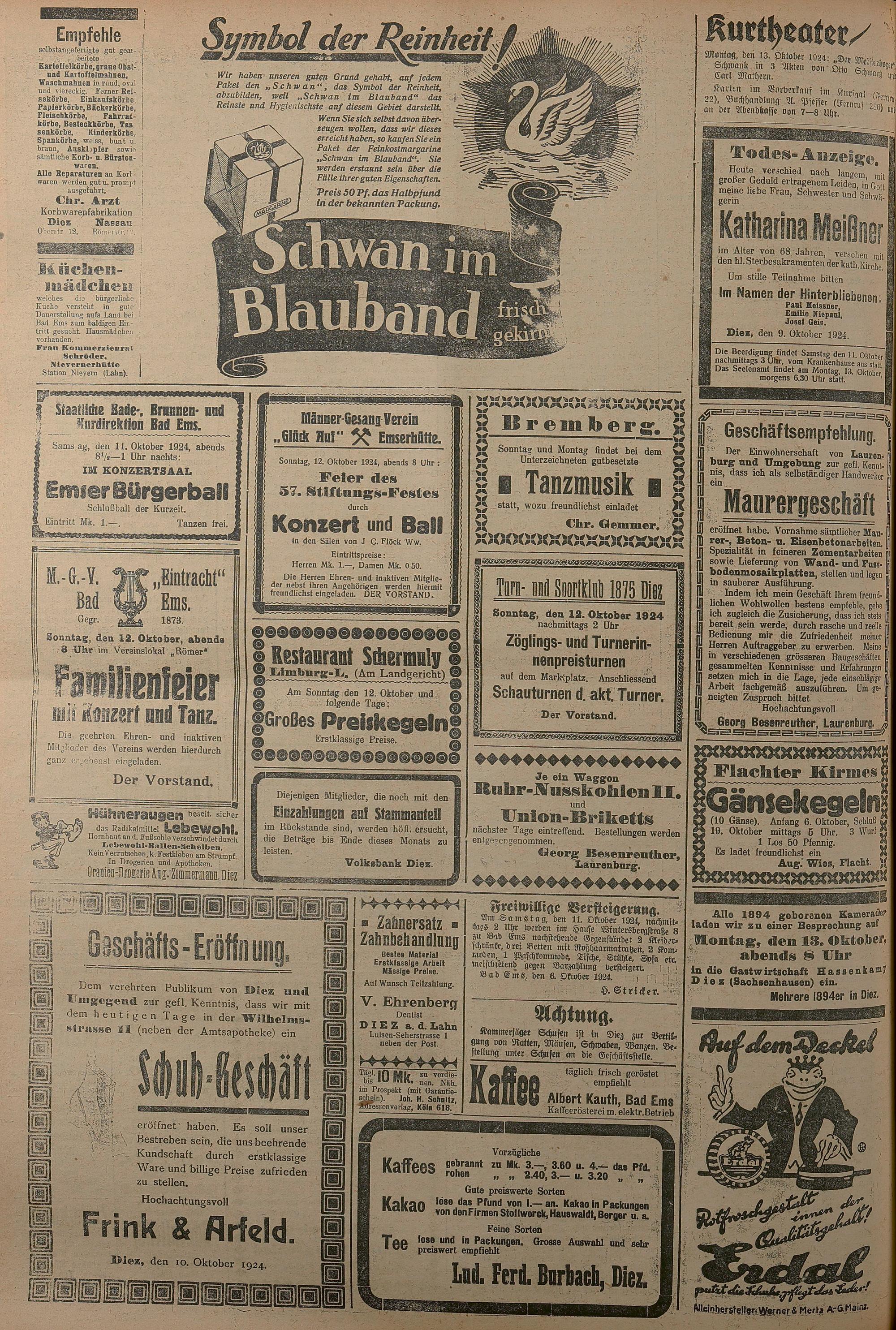 1924: Lahnbote bis 4. Apr. 1924/Emser Zeitung ab 5. Apr. 1924 - Nr. 10, 37 und 71...