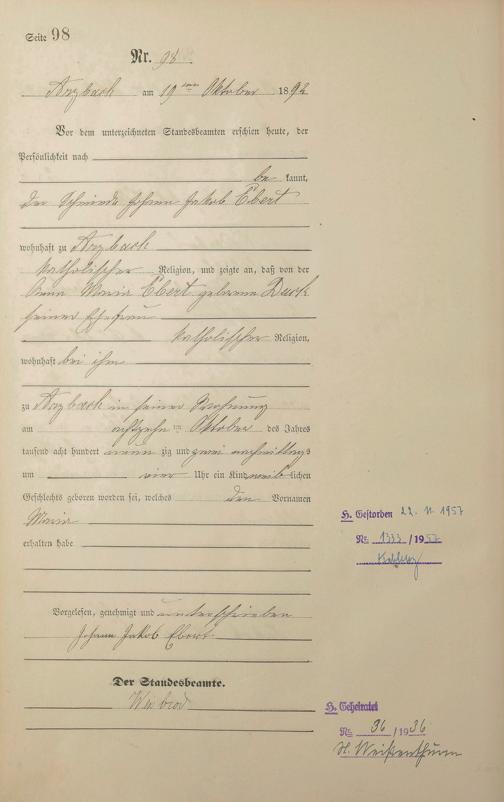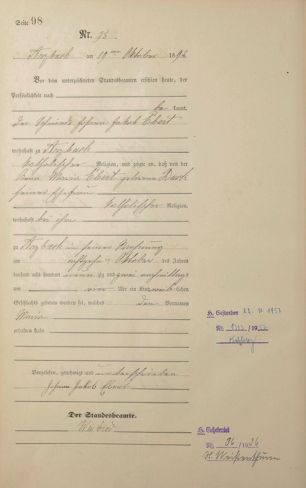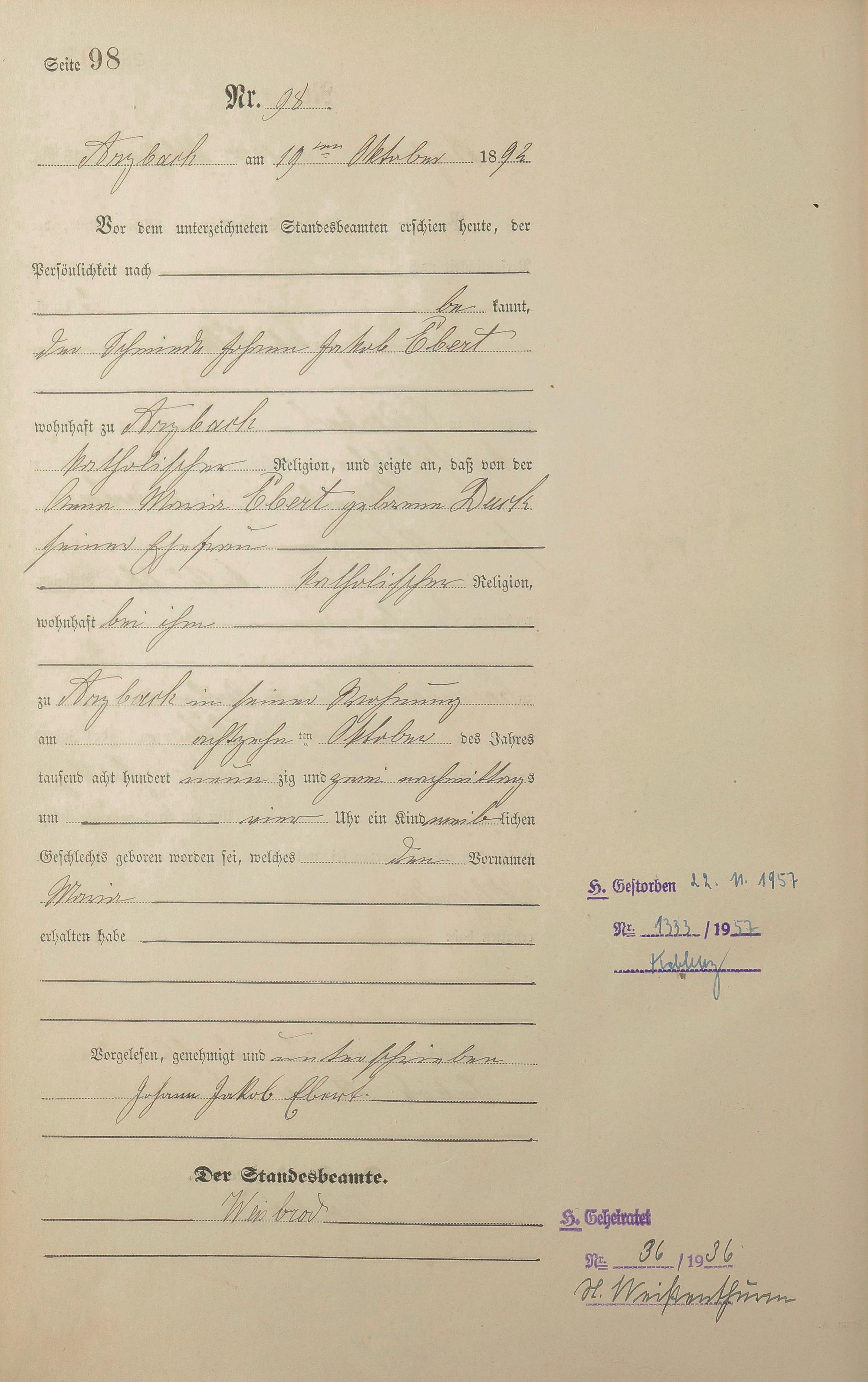Geburtsregister 1892