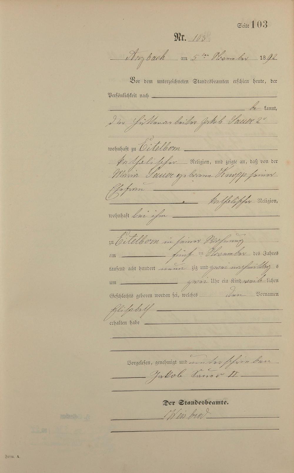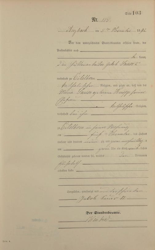 Geburtsregister 1892