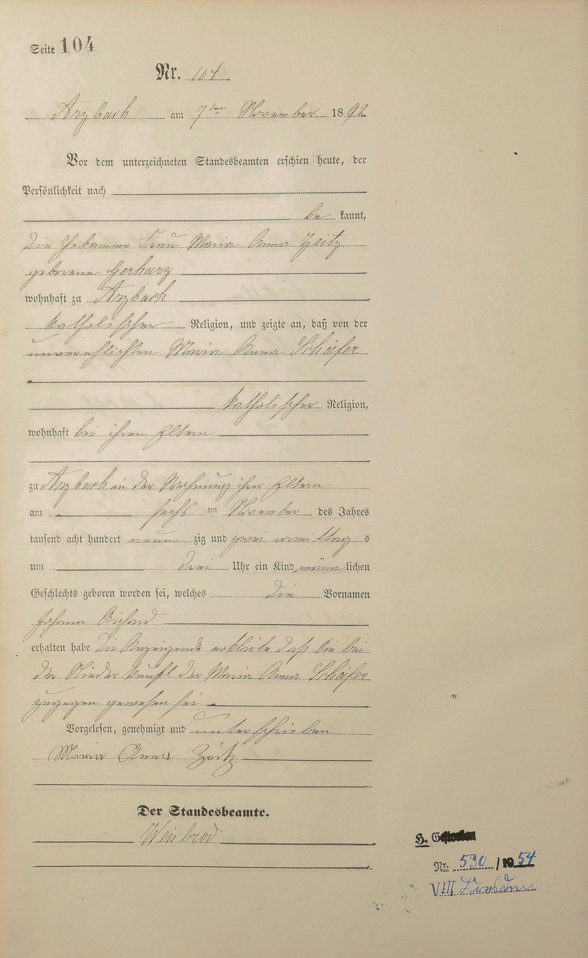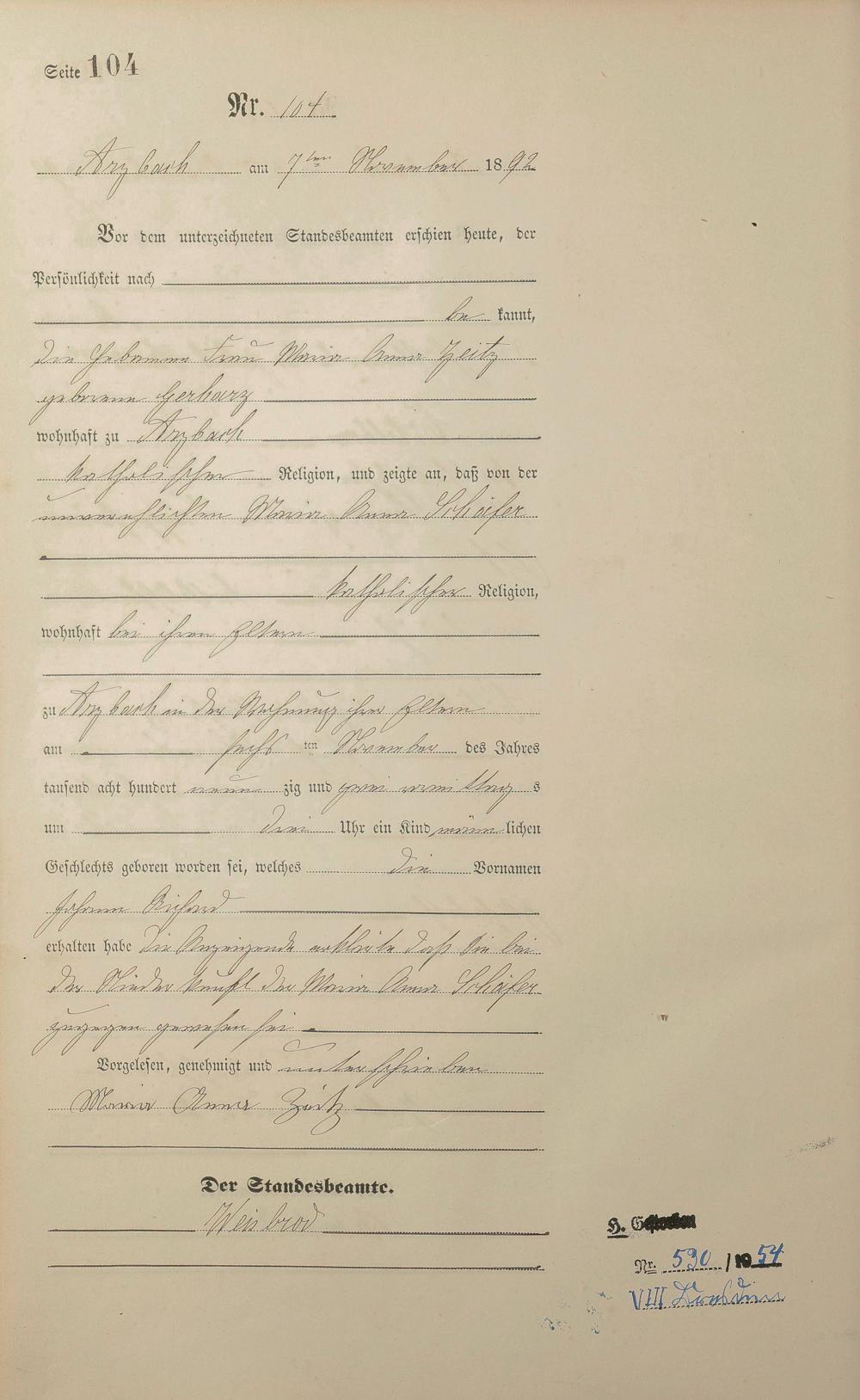 Geburtsregister 1892