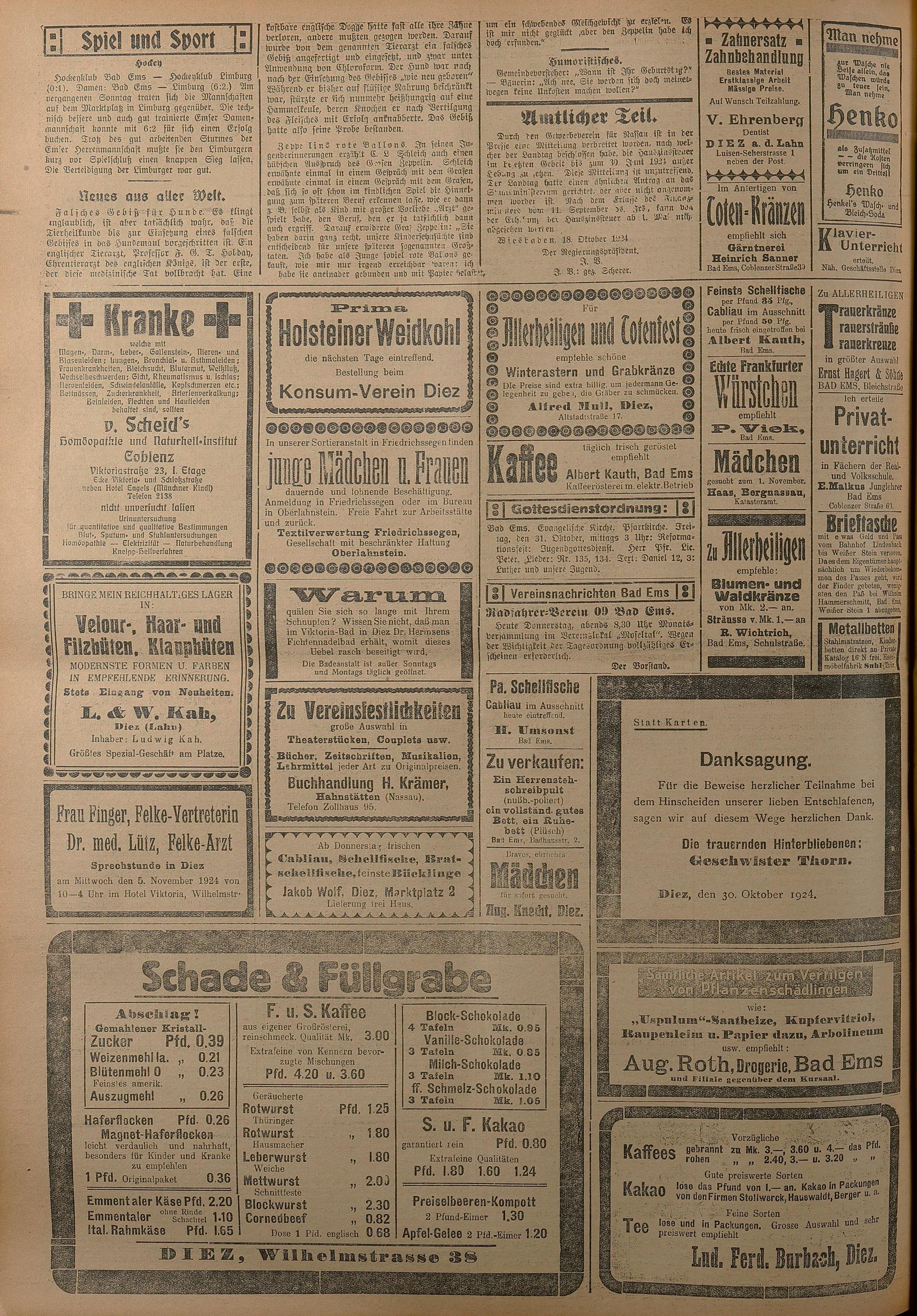 1924: Lahnbote bis 4. Apr. 1924/Emser Zeitung ab 5. Apr. 1924 - Nr. 10, 37 und 71...