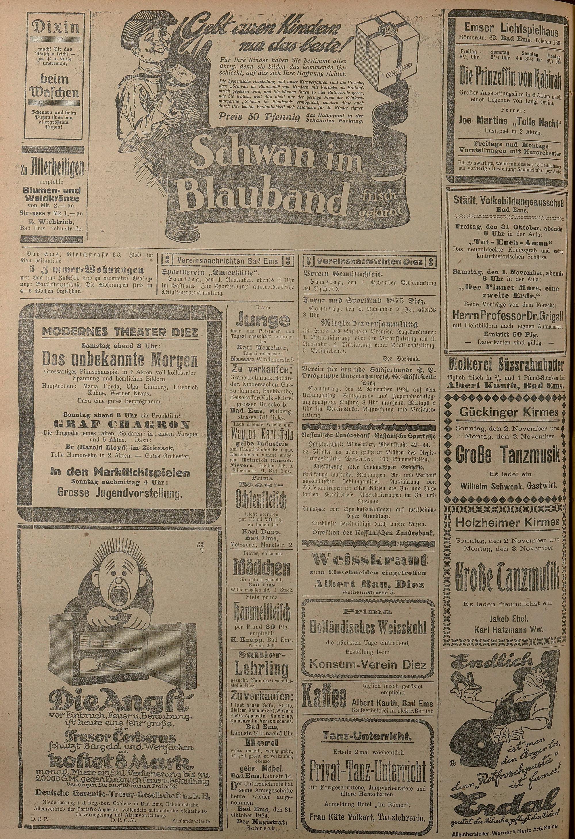 1924: Lahnbote bis 4. Apr. 1924/Emser Zeitung ab 5. Apr. 1924 - Nr. 10, 37 und 71...